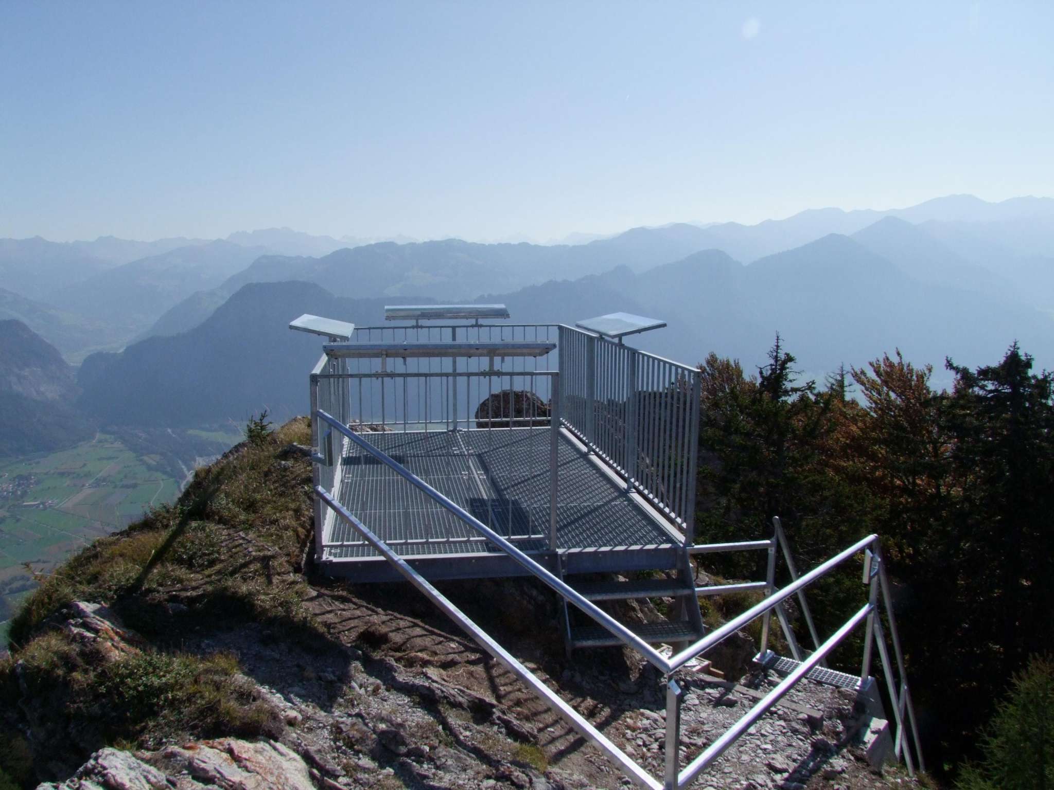 The Pizalun viewing platform on the St. Margrethenberg plateau offers a panoramic view of the surrounding mountains of St. Gallen and Graubünden. Thanks to the panorama panels you can easily name the many mountains around. At your feet are the Bündner Herrschaft and the Sarganserland. And the view along the Rhine leads to Lake Constance when visibility is good.
