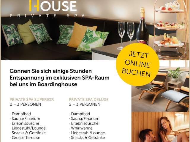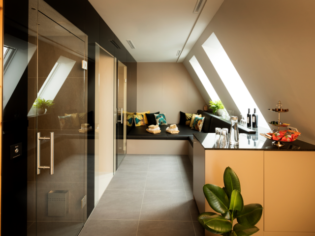 Private Spa Superior: steam bath / sauna, finarium / experience shower / deck chair with large terrace / lounge / snacks / drinks / view over the city