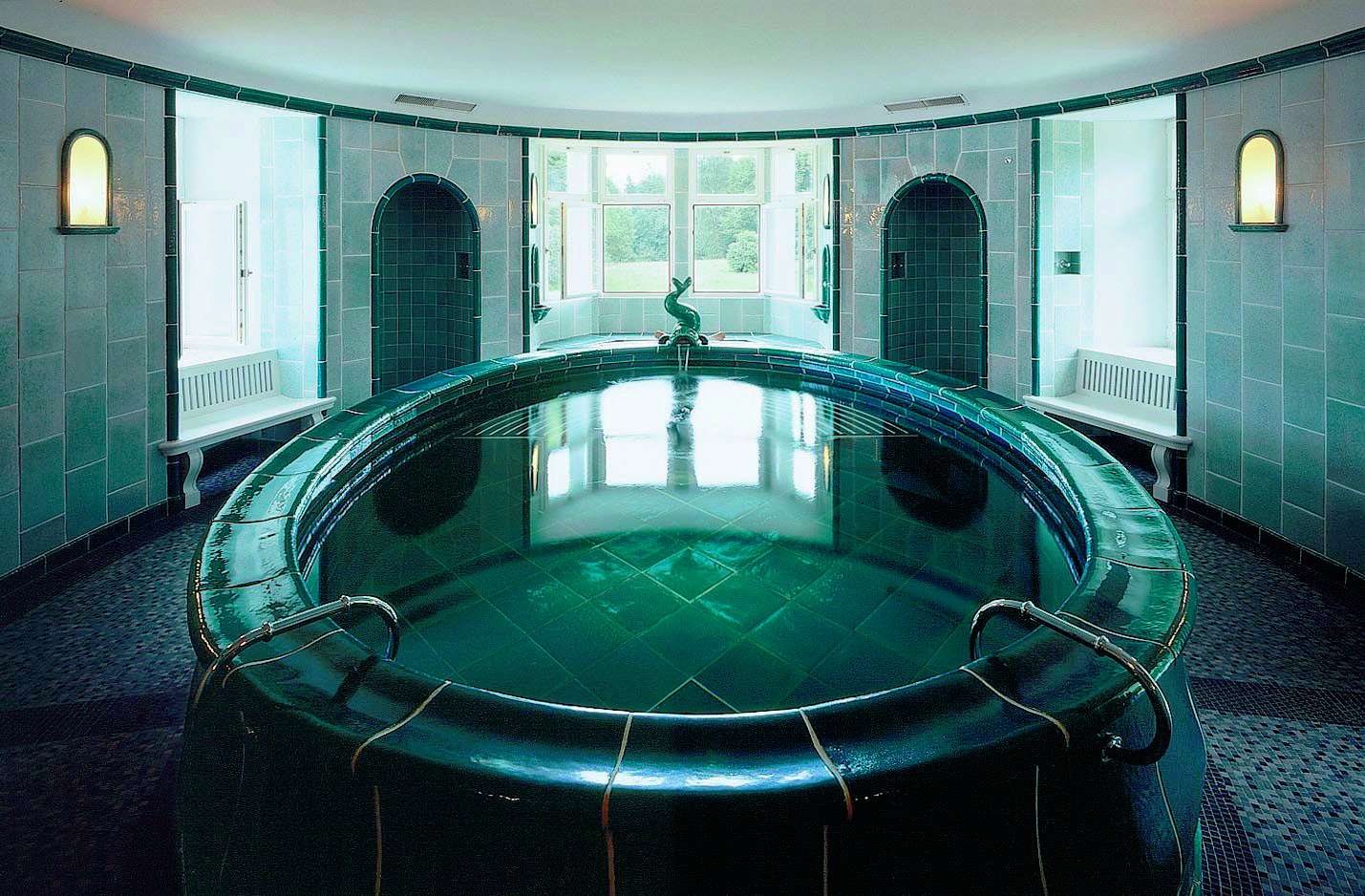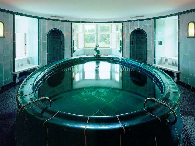 The historic “Turquoise Bath” is a 5.5 m oval bathing pool dating from 1928. Here you can relax completely after a sauna session. The sun terrace with a view of the treetops of the castle park also invites you to relax.