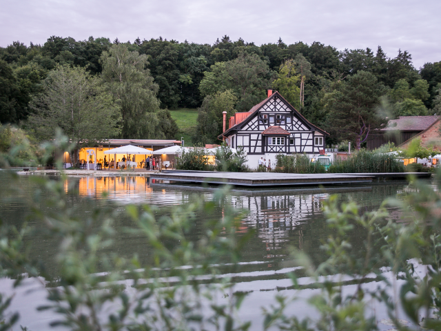 The nature and fishing park offers an ideal destination for a pleasure, company or family outing. In the restaurant, the own fish plays the leading role. An idyllic atmosphere, coupled with warm hospitality and culinary delights, awaits visitors. A playground outside and painting and toys inside await the little guests. The kitchen also conjures up fine dishes suitable for children. The banquet pavilion directly on the water is the ideal location for weddings and banquets for up to 150 people. All rooms are barrier-free and wheelchair accessible.