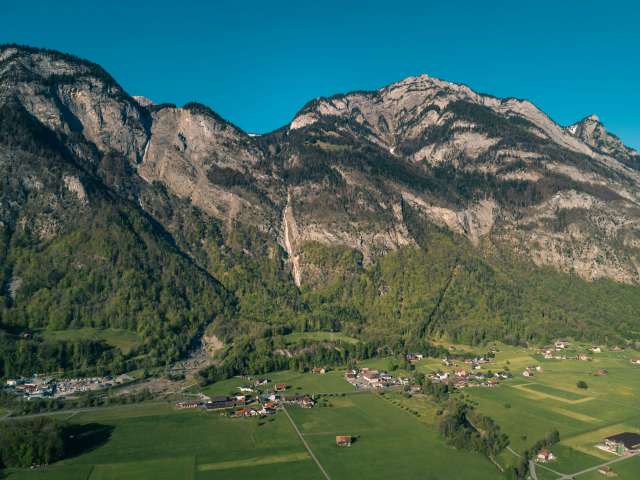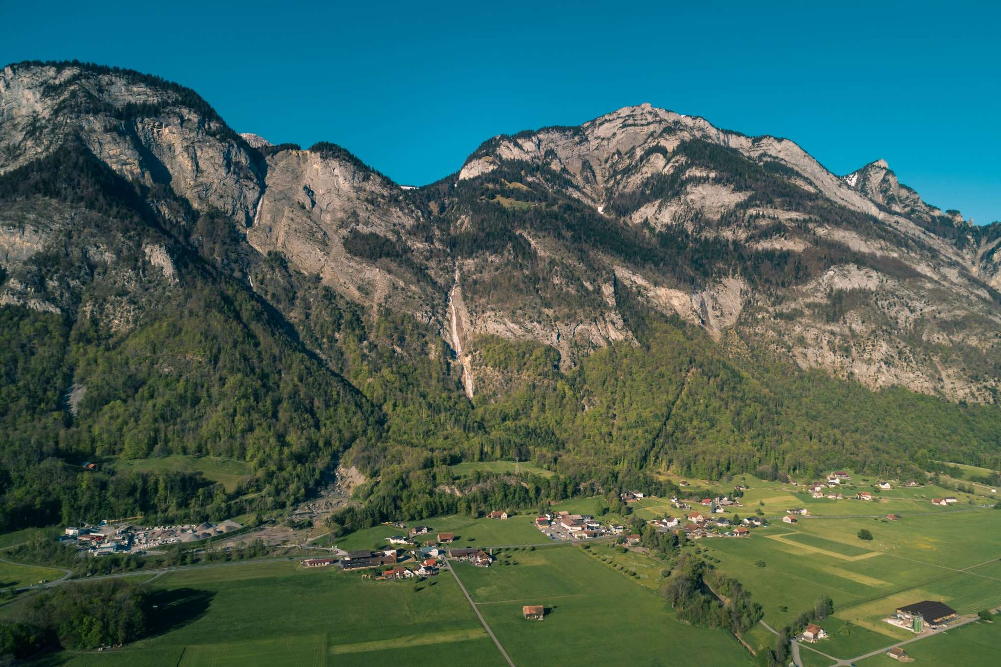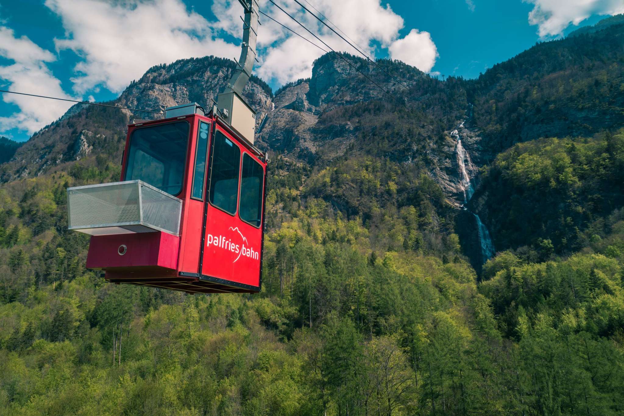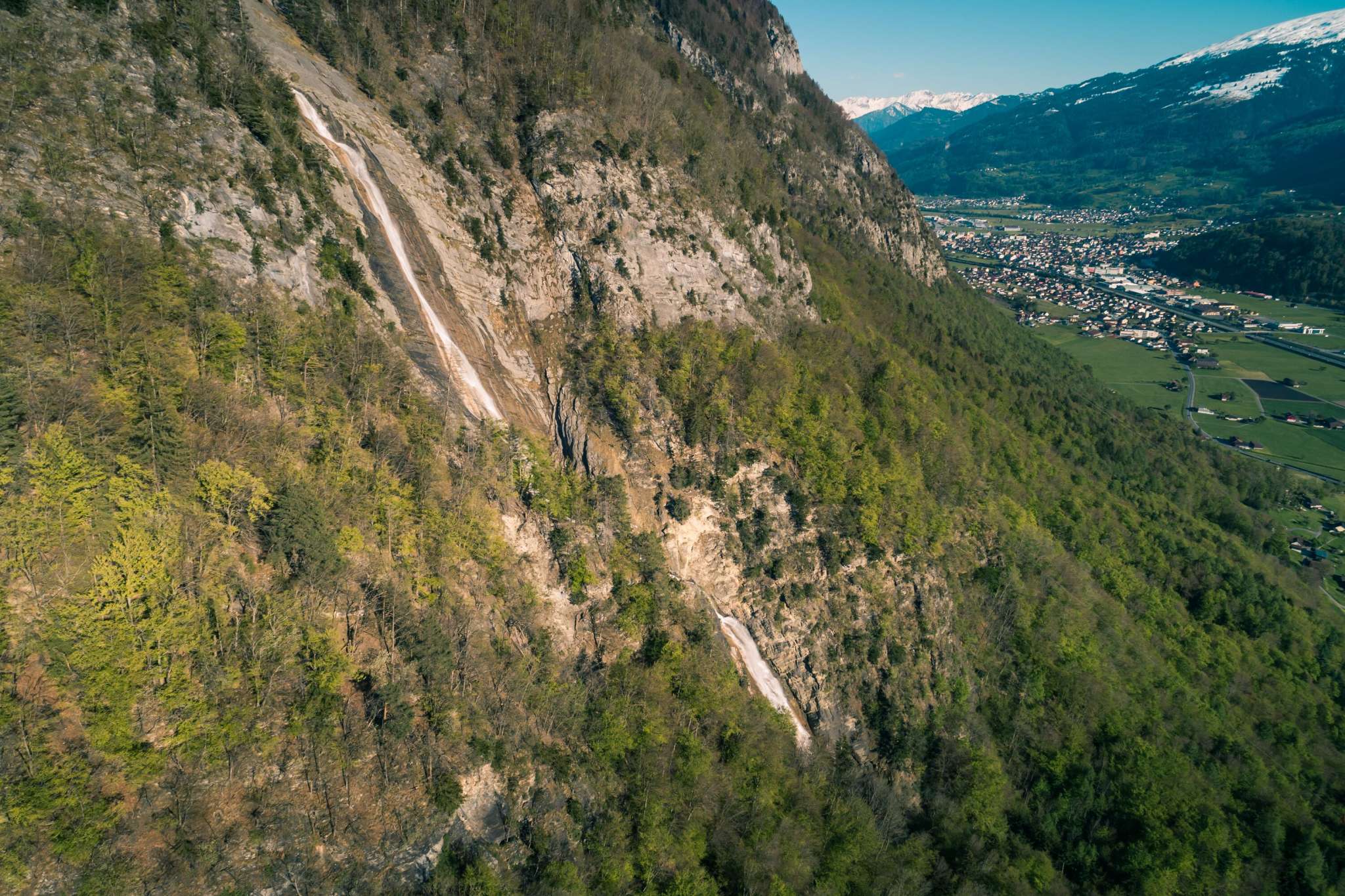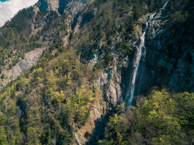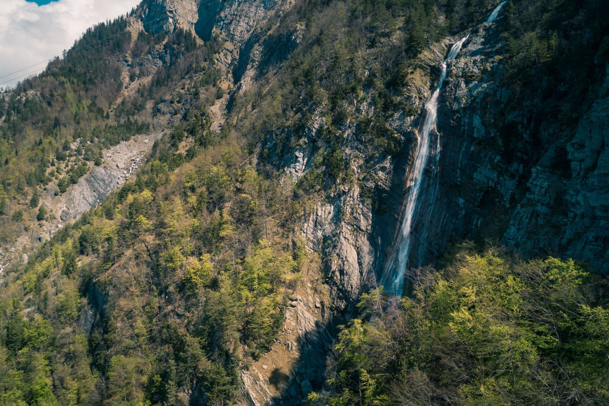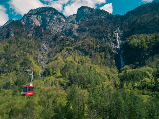 The Ragnatscherfall, located above Mels near Sargans, originates from a small stream that is about 3.5 km long. The water flows over sandstone into the valley, and the waterfall is already visible from the highway. What makes this waterfall particularly impressive is that you can float spectacularly above it. The Palfriesbahn cable car runs over the Ragnatscherbach waterfalls for long stretches. Tip: Visit the waterfall in spring during the snowmelt or after heavy rainfall.