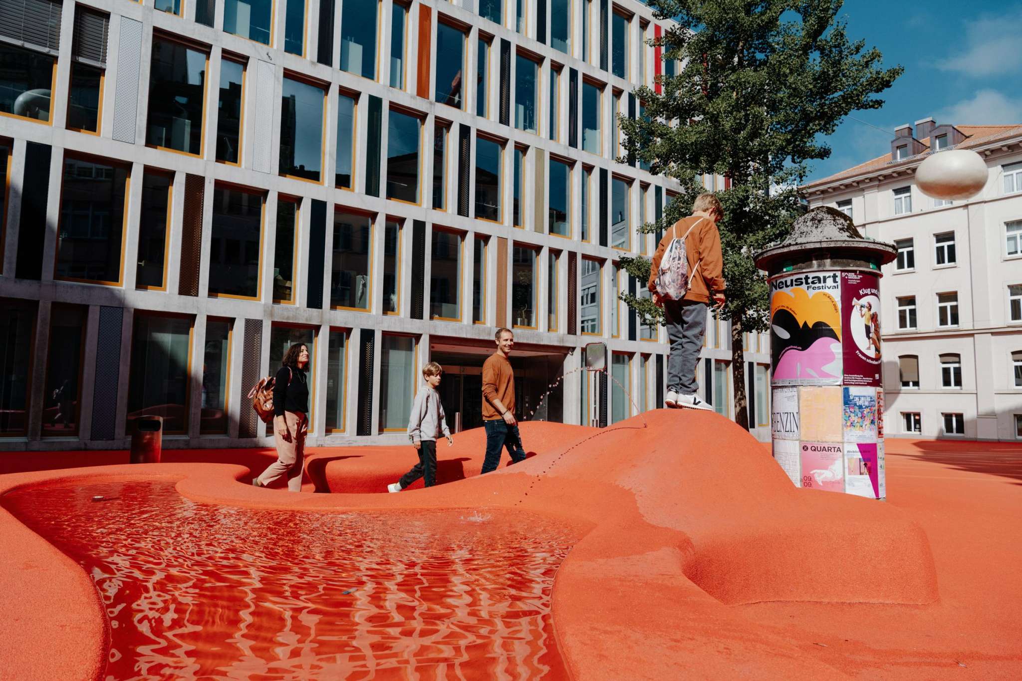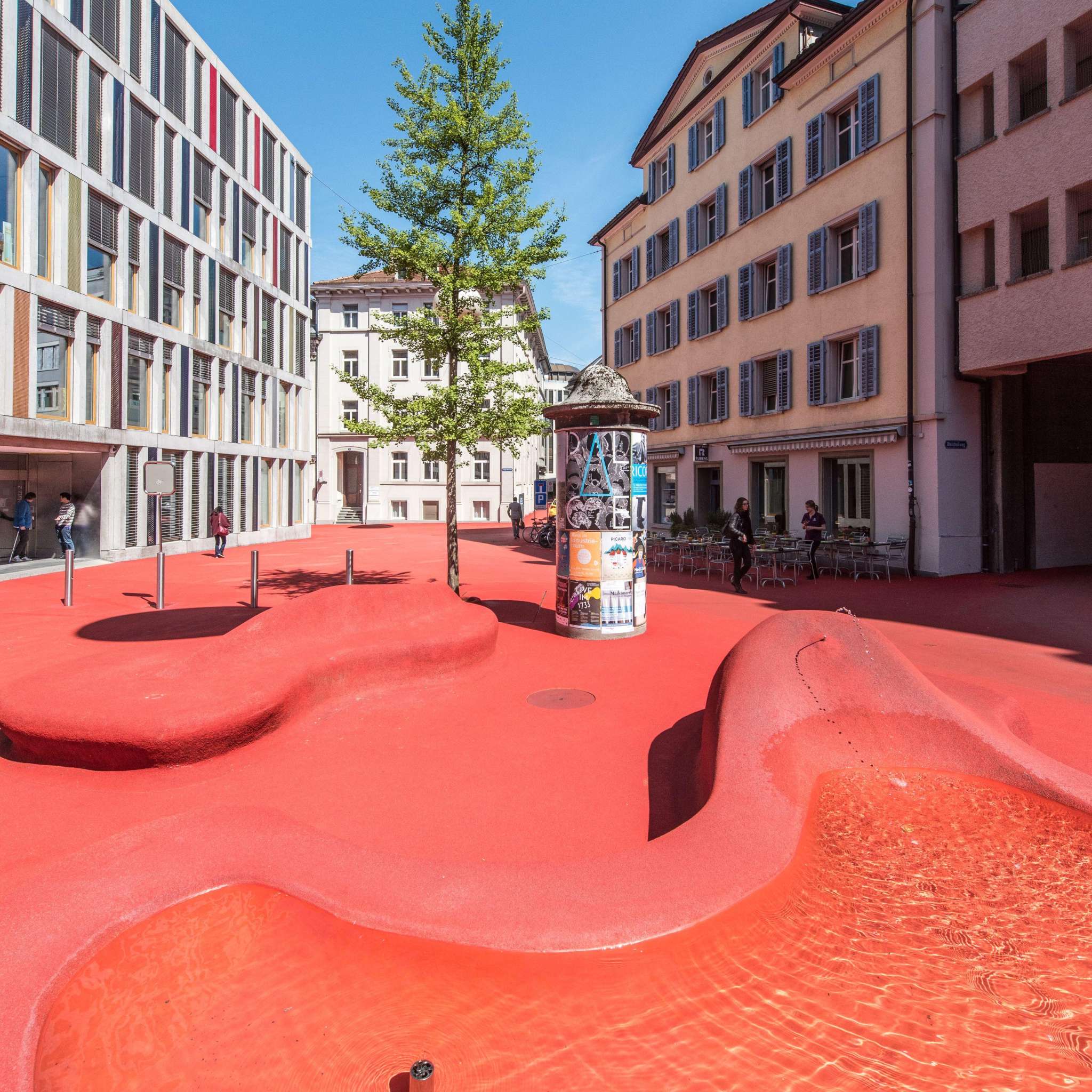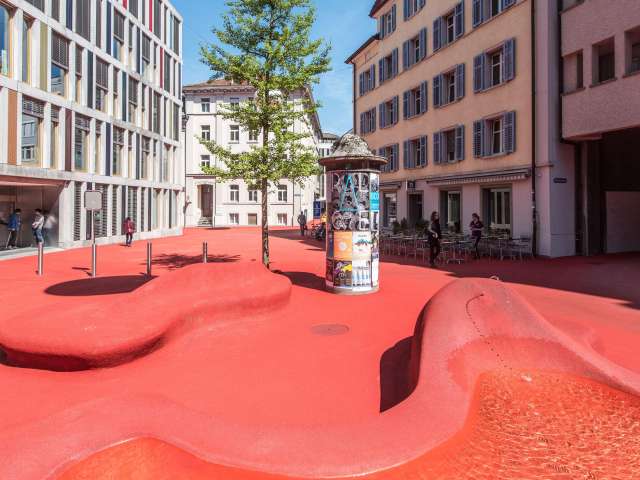 Welcome to the red carpet! The largest outdoor living room in Switzerland can be found in St.Gallen.