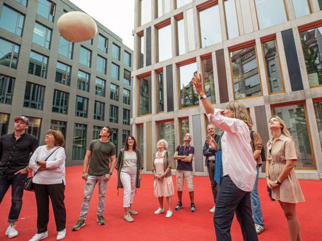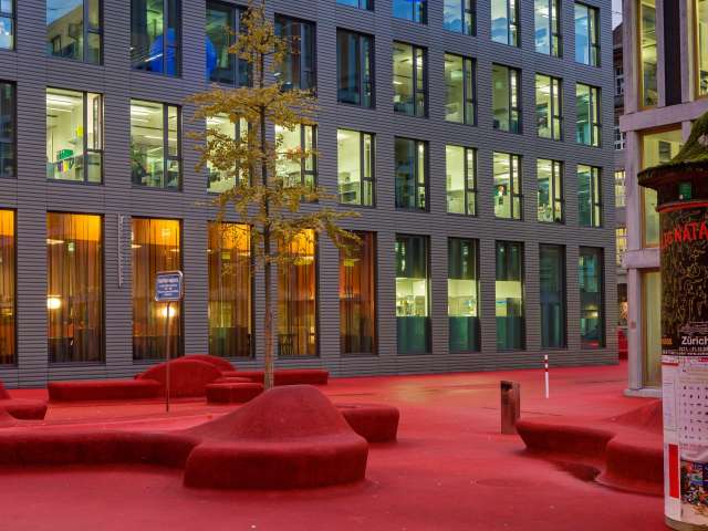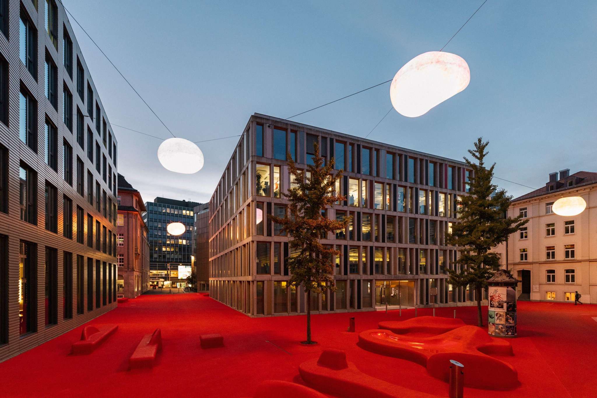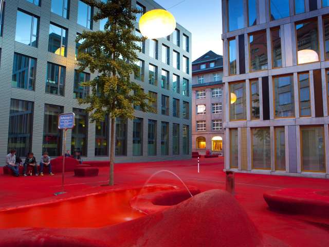The Citylounge transforms the Bleicheli district into an urban oasis accessible 24/7 for playing, relaxing or conducting business. This unusual project to create a public “Citylounge” was the brain child of architect Carlos Martinez and multimedia artist Pipilotti Rist. A spongy red carpet covers the entire public space to create a giant lounge. Overhead are floating lights that set the scene for different, discreetly changing lighting moods. Pipilotti Rist won the international City-People-Light Award for this glowing moon in 2008.