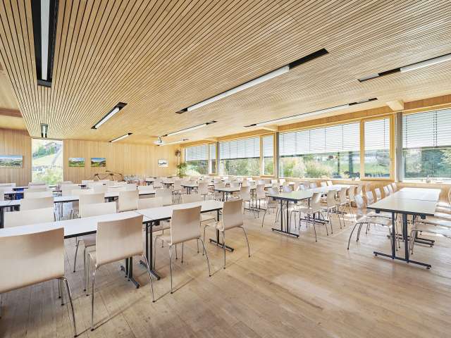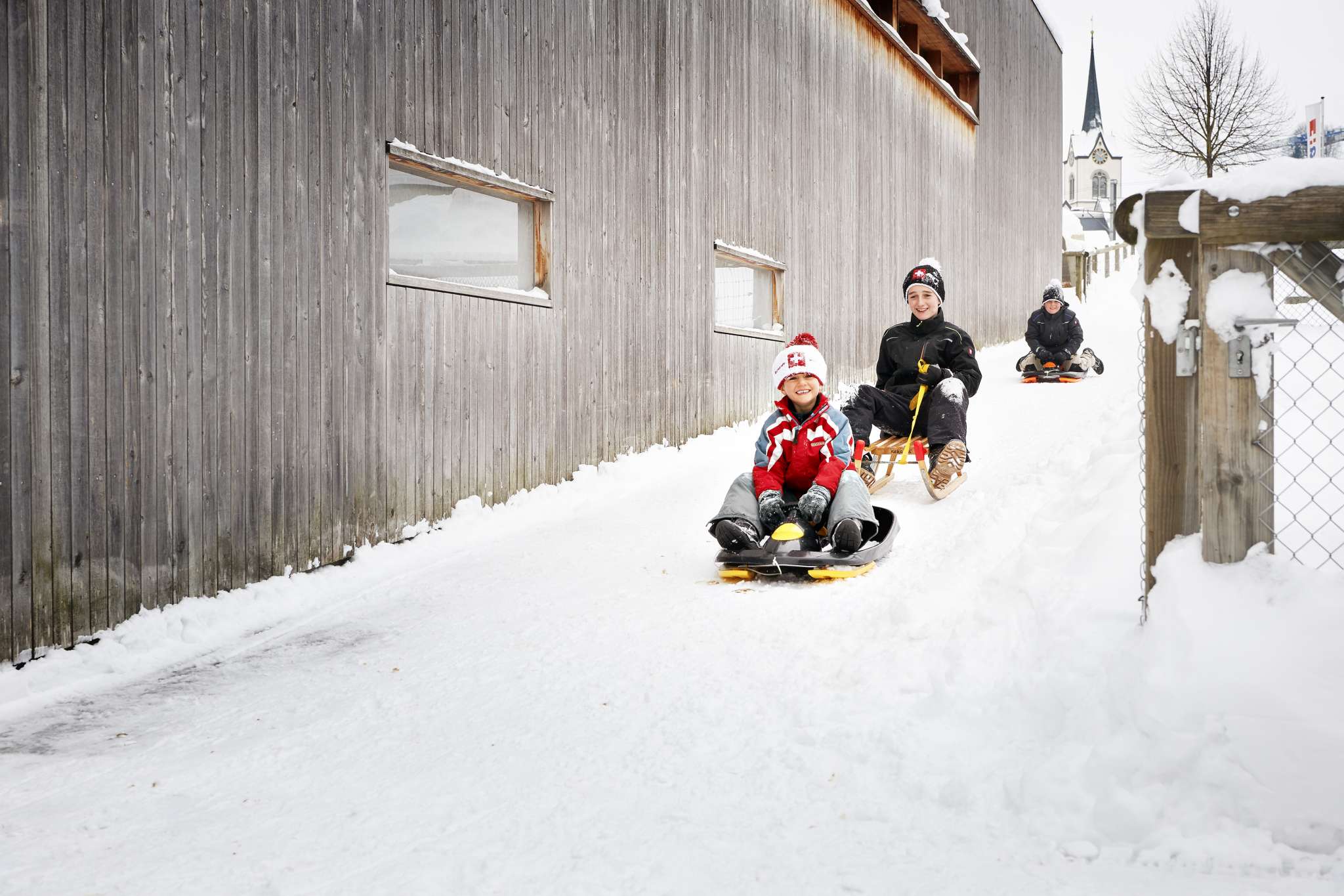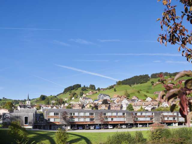 The Reka holiday village in Urnäsch can accommodate 50 families in the “Minergie” houses built from local timber (apartments with 2.5 to 5.5 rooms with balcony or outside seating area). In our small animal stable and petting zoo, children get the chance to get up close and personal with the animal inhabitants of the holiday village. The children can get in touch with different animals, feed them, stroke them and get to know them better. Indoor pool with children’s paddling pool and sauna area, various common rooms as well as play and sports areas outdoors, including a large trampoline, make for a fun day.