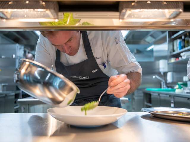 Culinary delights can be enjoyed on various routes at the Bad Horn Hotel & Spa: Mediterranean in the restaurant "Al Porto" or on the Giardino terrace directly on the water.