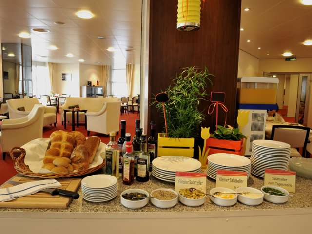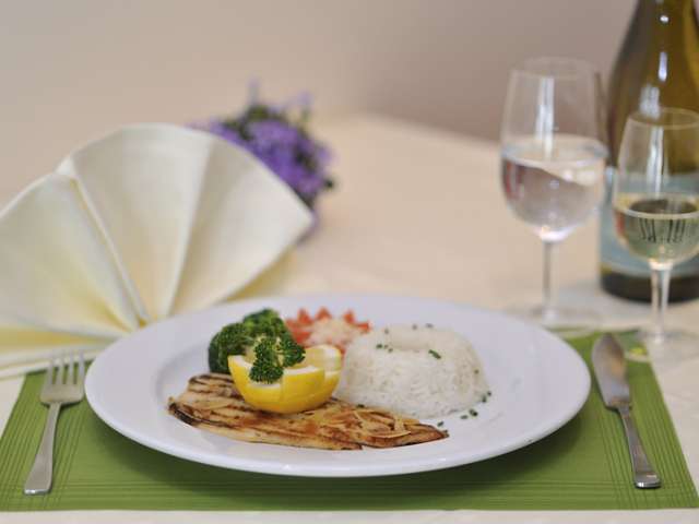 The restaurant in the hotel of the same name puts on a buffet breakfast every morning. A diverse menu is served at lunch from 11.30 am to 1.30 pm. And last, but certainly not least, visitors can enjoy a large salad buffet as well as coffee and cake and à la carte dishes in the evening (until 6.15 pm),