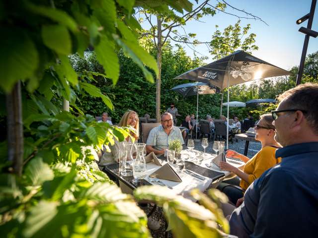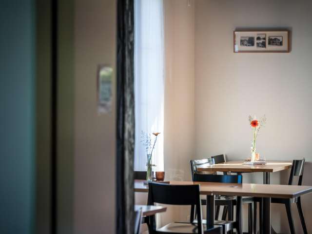 In the bistro, guests are served simpler dishes for the small appetite. The cozy, shady garden offers additional space to linger and enjoy in the summer.