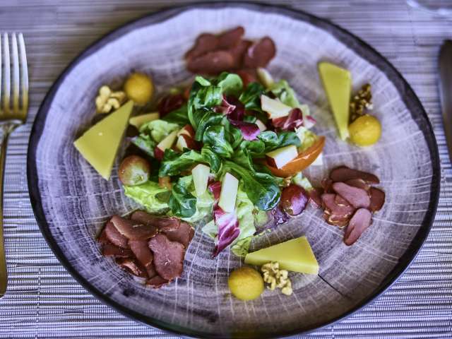 The Maienhalde restaurant is the first stop on the culinary hike in the Rhine Valley and treats guests to an appetizer.