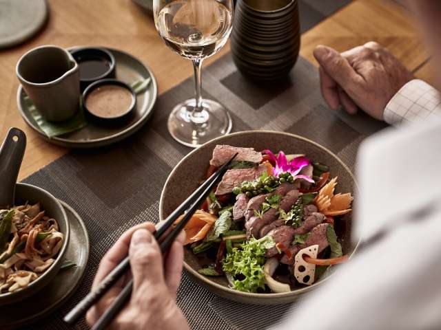 A flavourful Thai soup, steamed dim sum or a spicy crispy duck: the dishes at the restaurant Namun are masterpieces of Asian cuisine. And a dazzling firework that appeals to all the senses. With carefully balanced Asian flavours. A mixture of tradition and modernity. Authenticity and perfectly honed craftsmanship. In a stylish atmosphere. At the restaurant Namun, you can order exotic specialities to share or as single dishes, all at a five-star level. Namun promises to take your taste buds on an adventure to the Far East.
