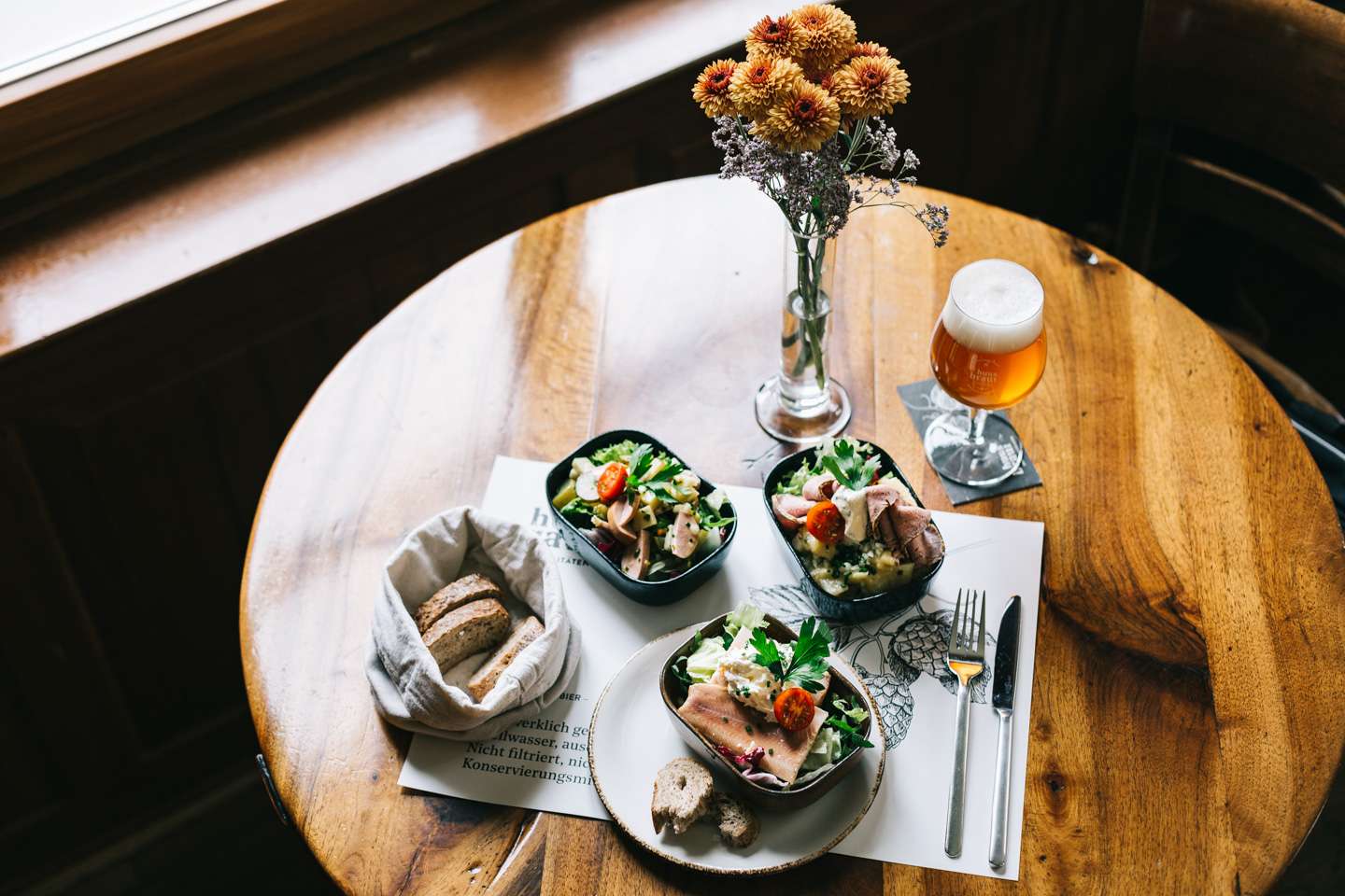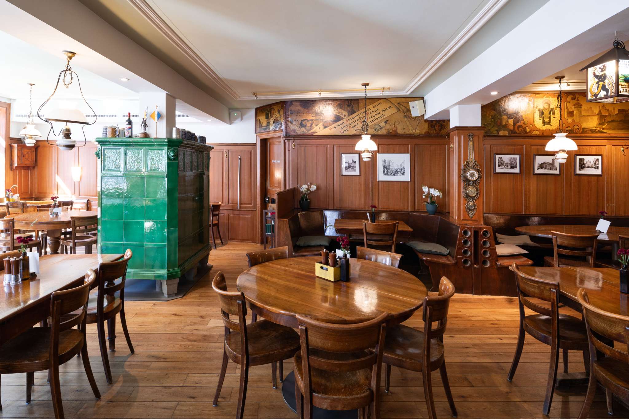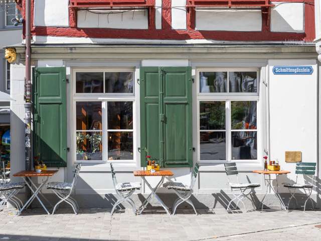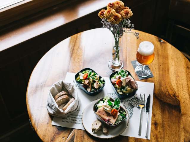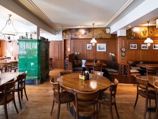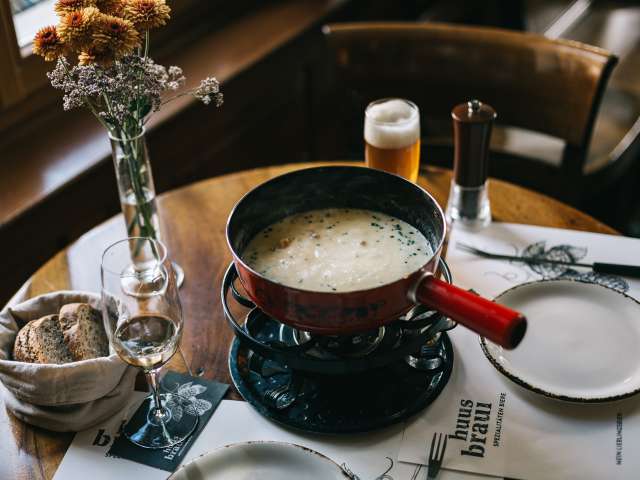 At the Restaurant National zum goldenen Leuen - affectionately known as “NAZ” - guests can enjoy a very special culinary experience: here they can enjoy specialties such as Chäschüechli, white sausages with pretzels and Swiss tapas, which are known far beyond the city limits. A freshly tapped beer from the huus-braui in Roggwil is the perfect accompaniment. The NAZ is a traditional pub in the picturesque Riegelhaus, which delights with its rustic charm and relaxed atmosphere. Situated in the heart of St. Gallen's southern old town on Grüningerplatz, just a few steps from St. Gallen Cathedral and the UNESCO World Heritage Site Klosterplatz, the NAZ invites both locals and tourists to linger. Every guest feels immediately welcome in the cozy dining room around the historic tiled stove. An insider tip: if you visit the toilets, you will discover an impressive wallpaper by St. Gallen textile company Jakob Schlaepfer in the ladies' room, while the men's room is decorated with artistic tiles by Austrian artist Manfred Deix. History meets indulgence: as early as 1894, the National was a place where German beers and wines were traded. Back then, imported beer mugs had to be provided with a Swiss calibration in order to be used in the beer halls.