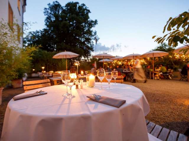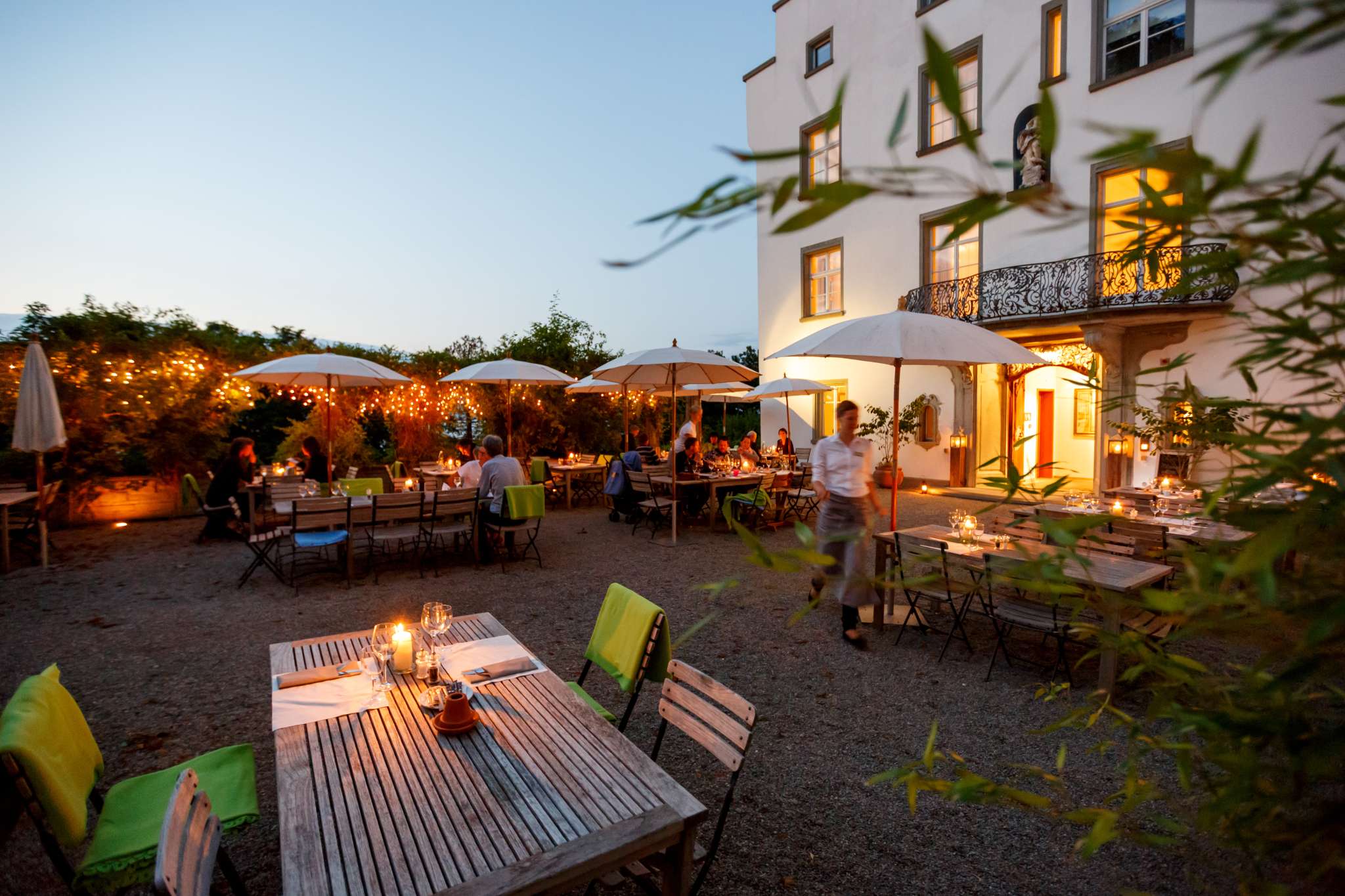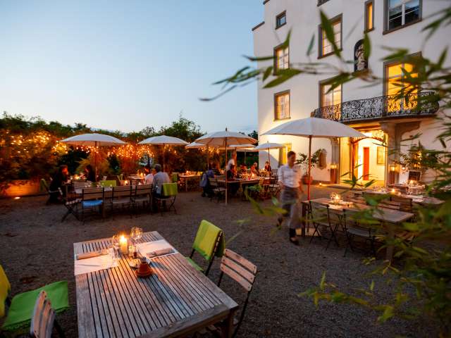 A highlight of the organic restaurant is the inviting garden terrace with its atmospheric view of the English park and Lake Constance.