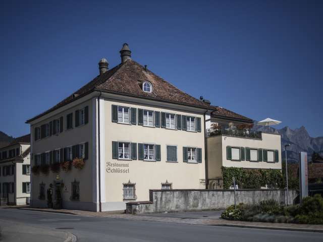 The Schlüssel Mels restaurant, located in the historic patrician house from 1811, offers a creative cuisine that combines French classics, Swiss tradition, and modern elements. Awarded 17 Gault Millau points and one Michelin star.