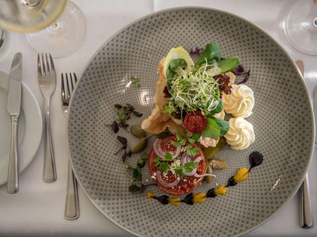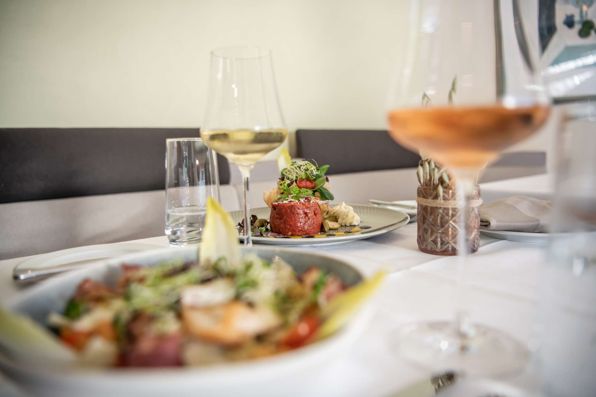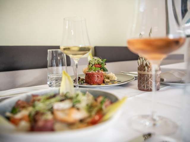 The sophisticated restaurant with garden seating area (in the summer months) offers daily changing lunch menus and innovative à la carte dishes. In the spirit of Pastor Sebastian Kneipp, in addition to the classics of the house, completely vegetarian dishes are also offered, which can be individually supplemented with high-quality meat or fish from the region according to personal taste. The kitchen team prepares each plate individually with attention to detail and the courteous host mentality of the service team rounds off the dining experience.