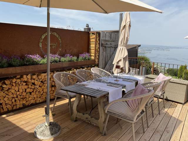 The restaurant offers a spacious garden terrace and a rustic interior with an open fireplace. The restaurant combines modern coziness with charmingly decorated wooden floors, plants and candles. Regional and seasonal dishes are served with meat from Heiden and fresh fish from Lake Constance and the Zellweger company. The wine list has been selected with a great deal of love and passion and the wines come from Terravigna and Tobias Schmid from the Rhine Valley.