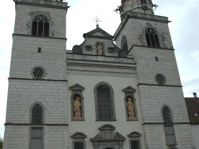 This church in Rheinau was built according to one in Voralberg: the pilaster hall, transept and altar are slightly raised and separated from the lay nave by means of railings.