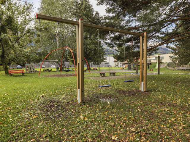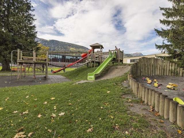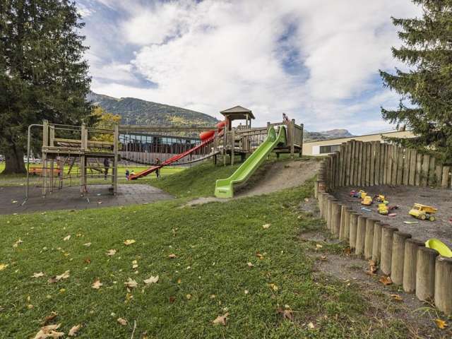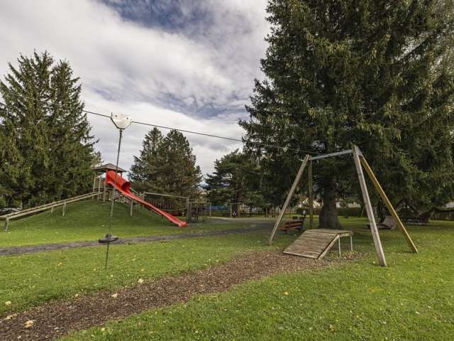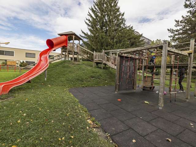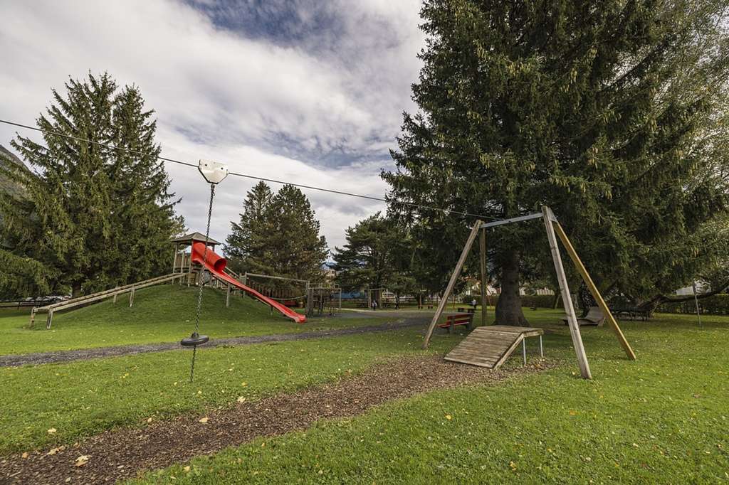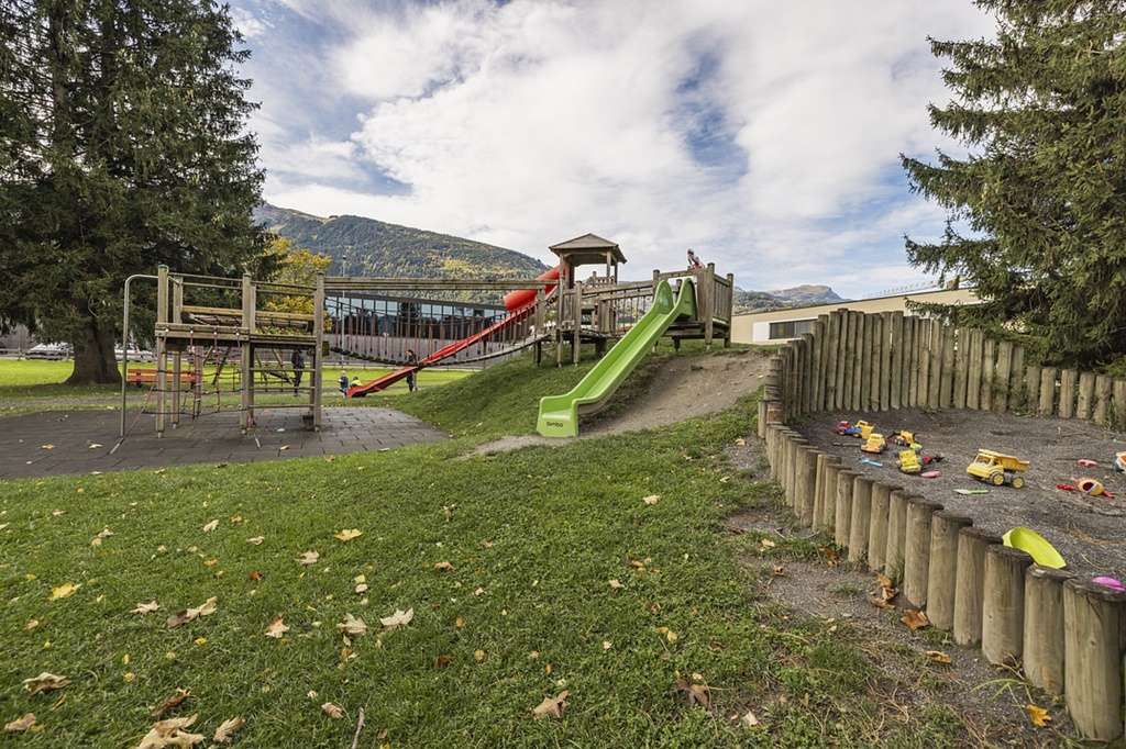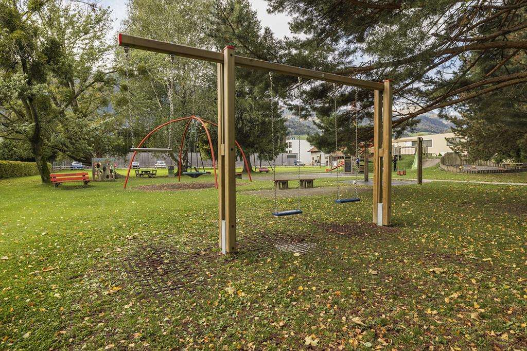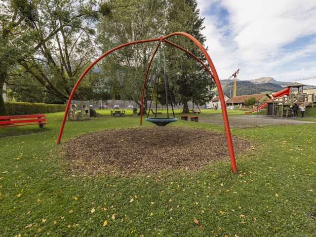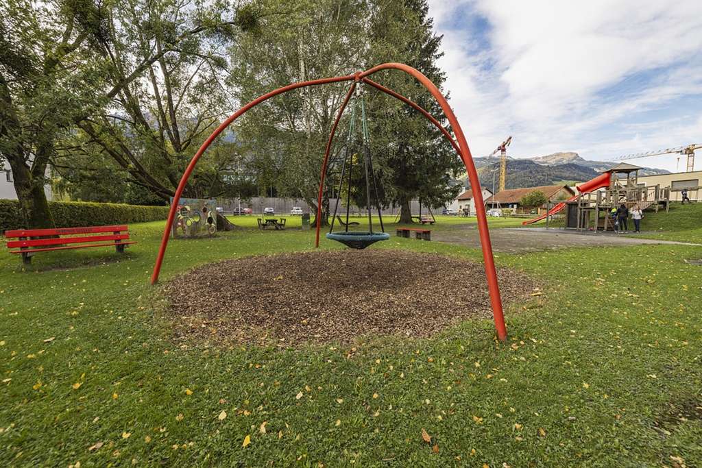 The Sargans playground offers numerous attractions such as swings, slides, and a zipline. A sandbox and various climbing opportunities provide variety. Parents can relax on benches and watch the children play.
