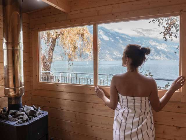 The sauna at Lake Walen offers a climate-neutral sauna experience with spectacular lake views from October to April. Suitable for up to six people, it invites you to relax in a unique setting.