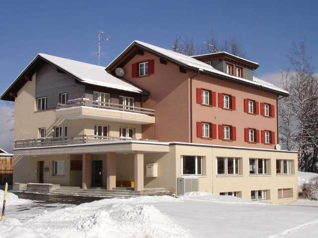 The school and holiday home Geisswiese in Flumserberg Saxli offers group accommodations with modern sanitary facilities, a playground, barbecue area, and internet. There are a maximum of four beds per room and a school kitchen.