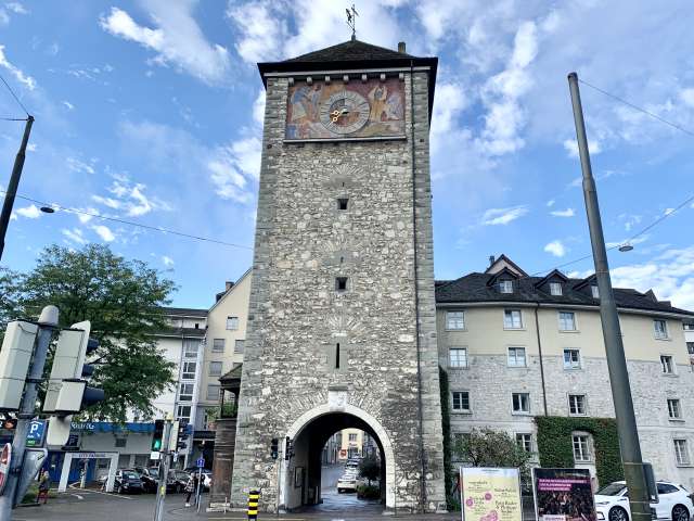 Schwabentor in Schaffhausen’s Old Town was first mentioned in records as "Neuturm" (New Tower) in 1361. It formed the northern side of the medieval town fortification against the Swabians. Today you enter the Old Town to Vorstadt through the Schwabentor. On the west facing side of Schwabentor a piece of the historical town wall with a battlement parapet still remains and the Finsterwaldturm serving as the corner tower has remained intact.