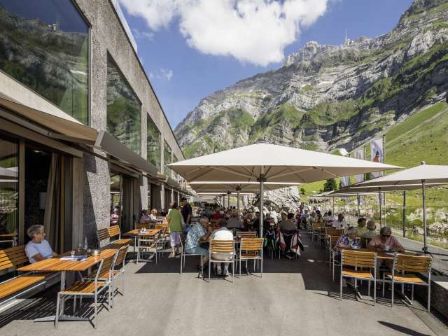 At the Schwägalp restaurant, part of the modern Hotel Säntis, you can relax in modern surroundings and enjoy spectacular views of the Säntis massif.