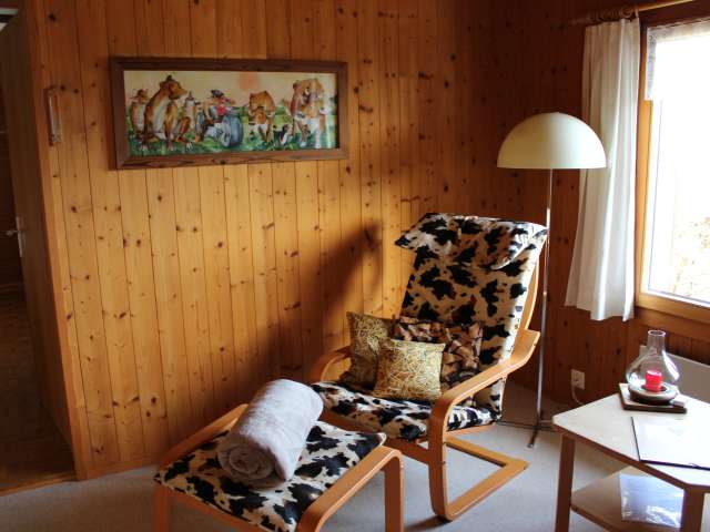 This little chalet has a well-equipped kitchen, bathroom with toilet and shower, bedroom with a double bed and a small, cosy living room with TV and radio – everything you need for a delightful stay. Not to mention the technicolour panoramic spectacle happening right outside the window. The large garden and terrace provide plenty of space to enjoy the natural surroundings and relax outside. Savour the beautiful sunrises and sunsets over the Alpstein. The breathtaking views of the Alpstein mountains, hills and countryside also prompt you to go hiking, get active or head out for a walk. The chalet is perfectly situated for hiking or winter sports holidays with snowshoeing, cross-country skiing or sledging.