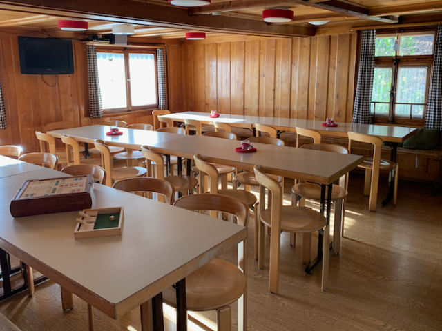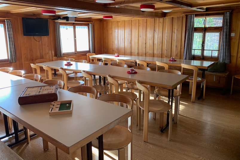 Our "Skihaus Sunneschy" is located in Tannenheim on the right side of the road from Flums to Flumserberg opposite the fire depot Mätzwiese. 5 minutes on foot to Tannenheim: mountain railroad Prodalp-Express, Aparthotel Edy Bruggmann, sonderBar, post bus stop, sports store. Ideal from 10 to 20 persons. It offers 4 shared rooms with a total of 25 berths. For larger groups, the dormitory with a total of 22 places and two double rooms (for the leader/kitchen team) can be rented in addition. Equipment - Kitchen - beautiful dining and lounge area - Office / small living room - 4 rooms (5s, 6s, 2 x 7s) - 2 washrooms - 2 showers, 2 WC's, 1 urinal - Checkroom - Ski room - Cellar with washing machine and small tumbler - large playground. - Dormitory and 2 double rooms - optional for large groups