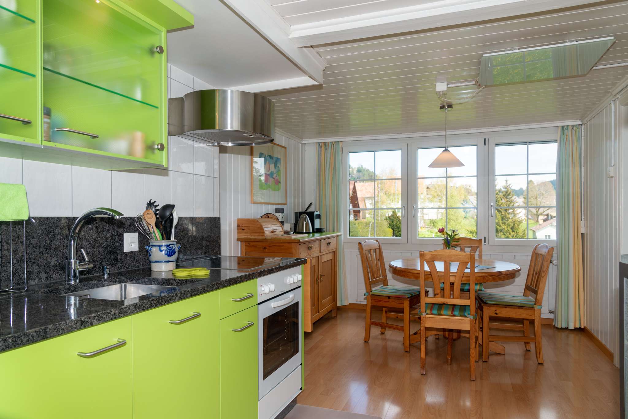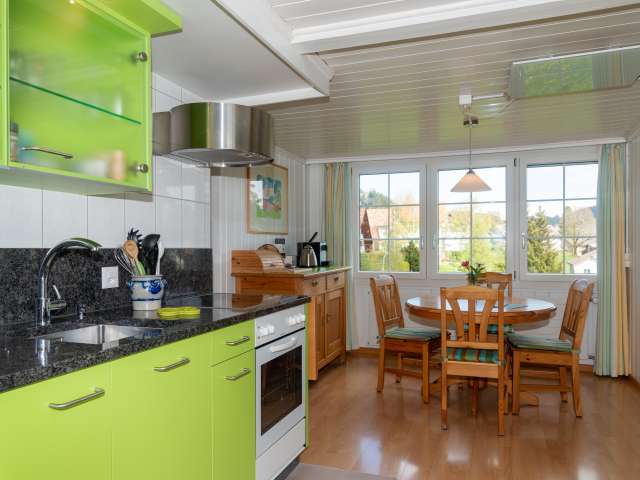 3-room apartment with tiled stove and wood-burning stove. Quiet, sunny and central location. Use of garden patio, separate entrance. Bed linen, kitchen and bathroom towels included.