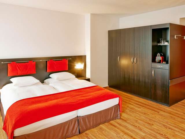 All rooms are very spacious and inspire with a magnificent panoramic view of the Alps. Amenities include a minibar and a coffee machine.