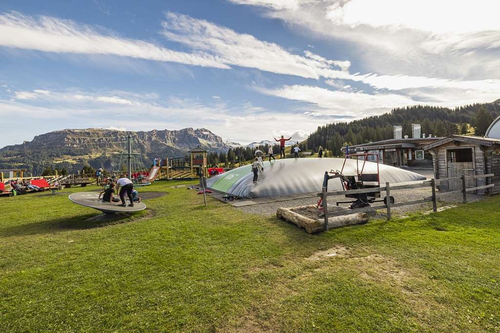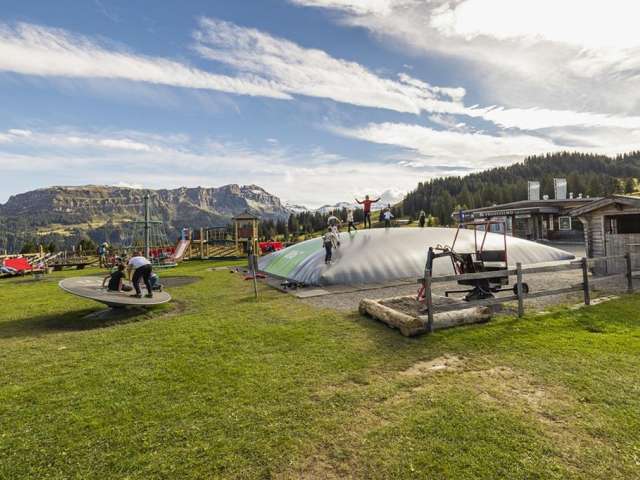 The Prodalp Flumserberg playground offers children a variety of play opportunities at 1500 m above Lake Walen. With jumping cushions, a bouncy castle, swings, and a bike course, it is ideal for exercise and fun. Nearby are the Prodalp restaurant and the Cliimber climbing tower.