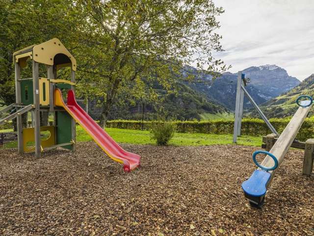 The Valens playground offers plenty to explore with two towers, climbing elements, and a slide. Swings, a zipline, and a large sandbox provide fun. A water play area with a pump is especially popular in the summer.