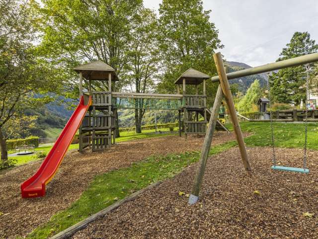 This playground with two towers with climbing elements and a slide offers plenty to explore. The swings are great fun even for the little ones and the zipline makes for an exciting adventure. A large sandpit invites children to dig and the water feature with pump is particularly popular in summer. While the children play in the playground and experience their adventures, parents can relax in the picnic area and spend time together or grill something delicious on the fire pit for the hungry adventurers.