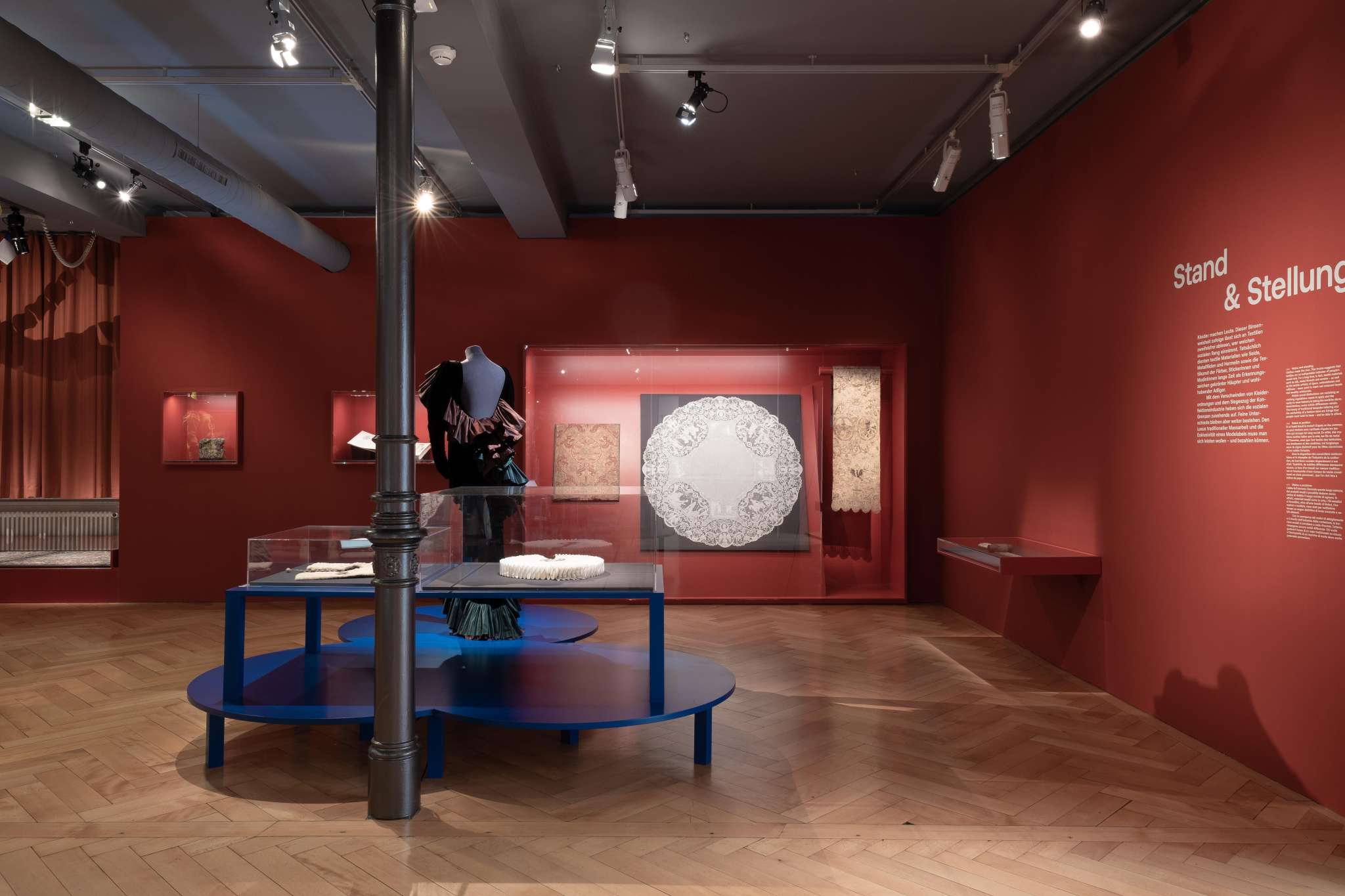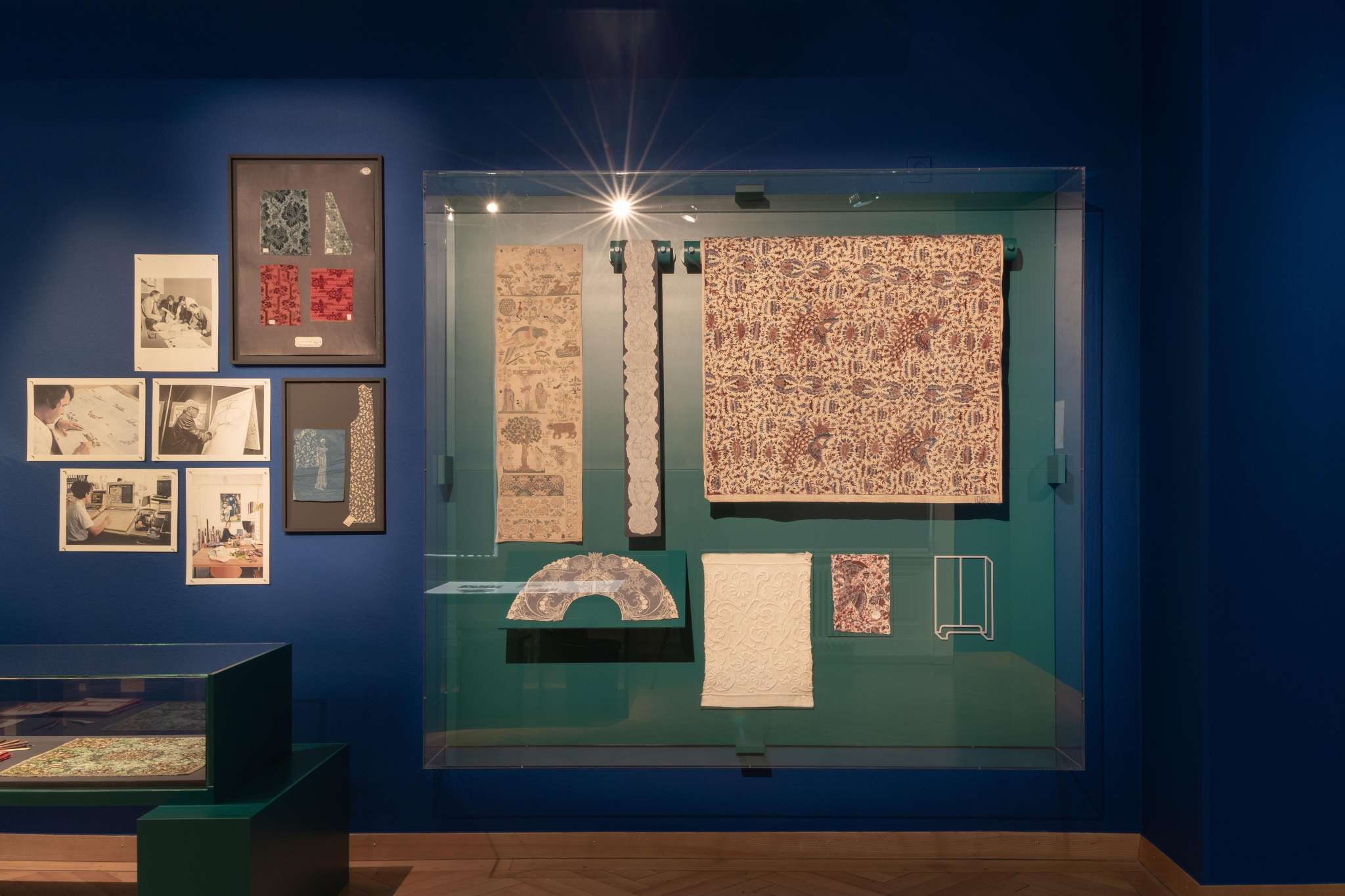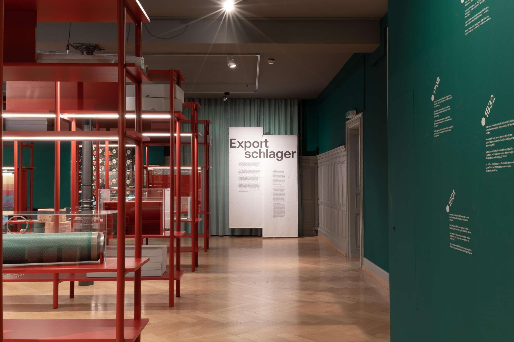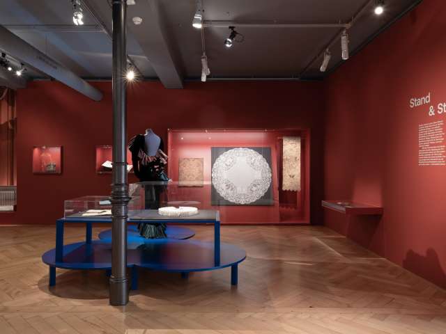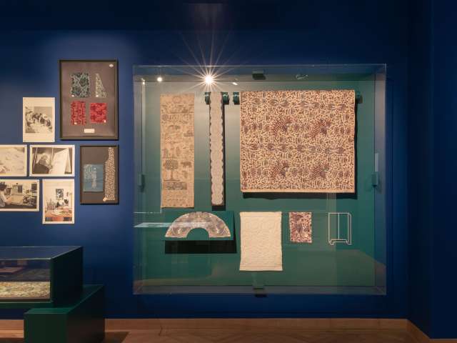 Fabrics and embroideries from all over the world, pattern books, design drawings and photographs illustrate the fortunes of the Swiss textile industry between regional ties and international integration.