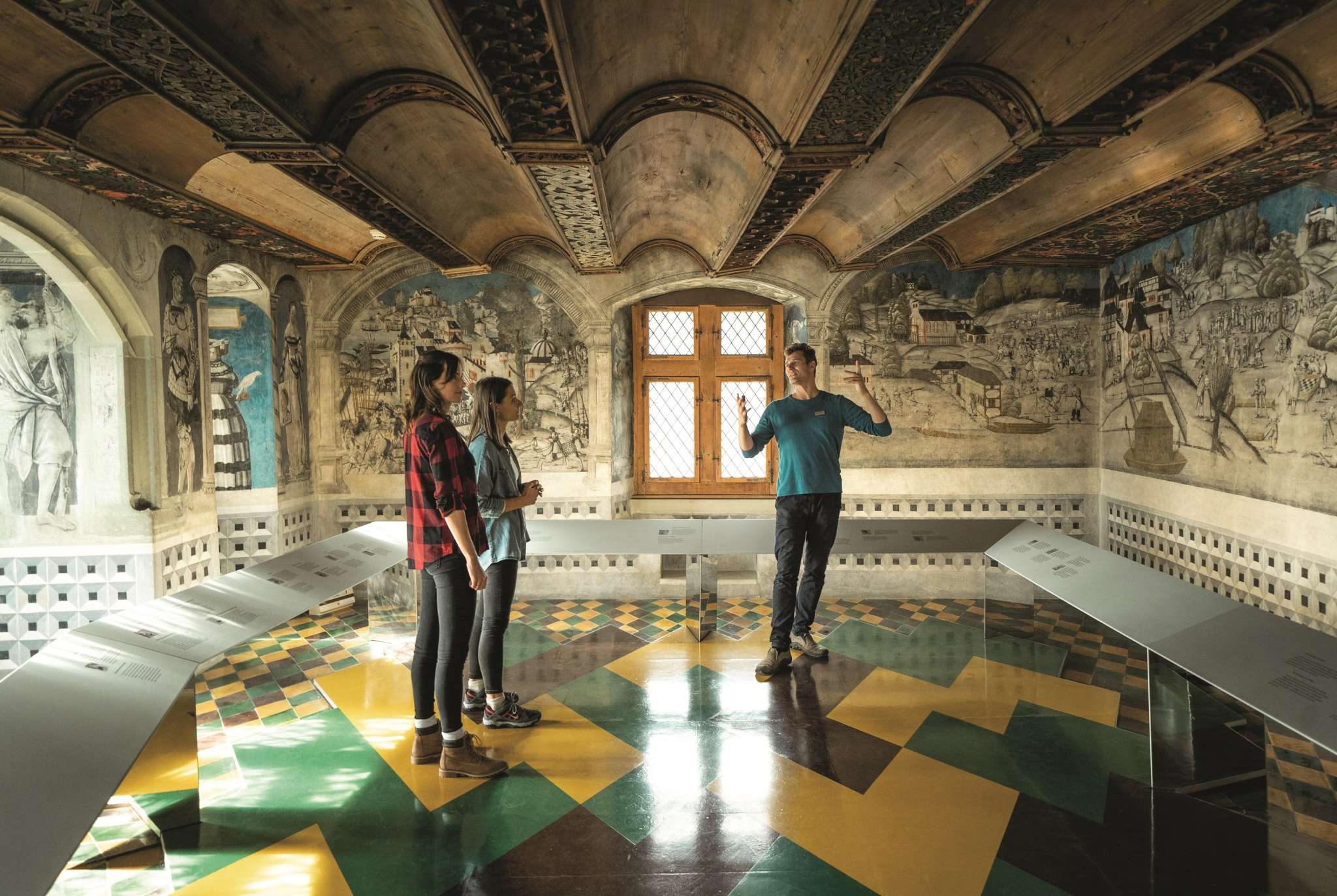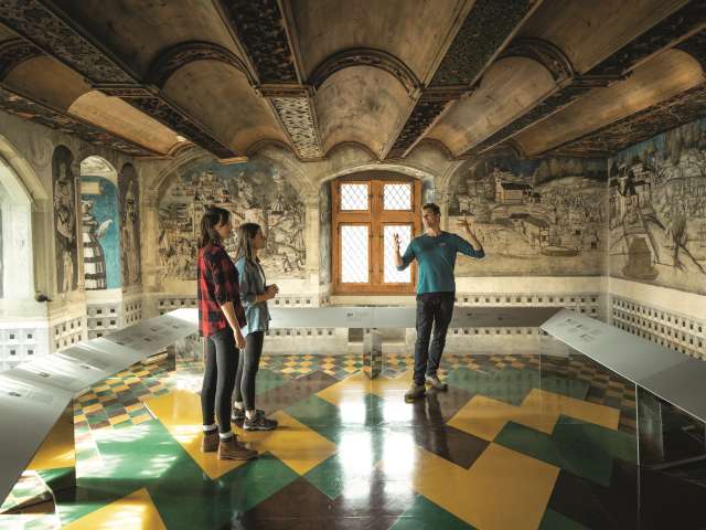 Of particular importance are the late Gothic cloister and the so-called celebration hall, erected by the last abbot of St. George's, David von Winkelsheim. Here you will find the most important, still existing fresco paintings north of the Alps dating back to around 1500.