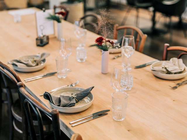 The small but fine bistro menu includes feel-good dishes such as a warming Greek stifado, as well as vegetarian and vegan creations. If you like, sit down at the long wooden table, enjoy a specialty coffee and a piece of cake from the house bakery. Everything is also available to take away for the office or a picnic.