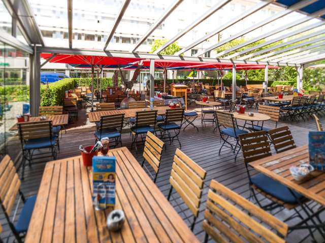 The huge menu offers American favourites from all over the country – whether Ceasar salad, steaks, burgers or spicy southern cuisine. The popular “American All-You-Can-Eat Brunch Buffet” is available every Sunday.