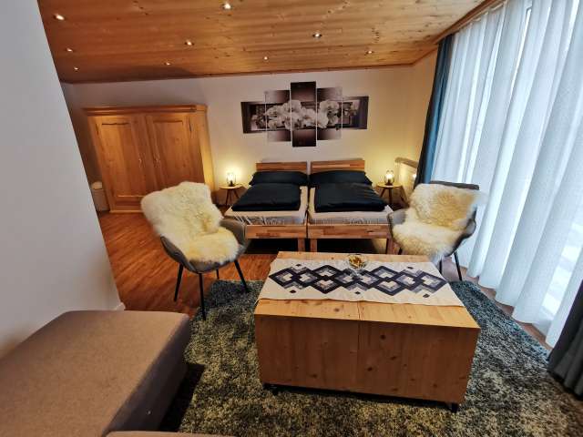 This farm is located at the foot of the Hundwiler Höhi and enjoys a lovely view of the Säntis. Here you will meet various animals – cows, calves, pigs, sheep, chickens and cats. The clean and attractive room sleeps two with an extra bed, and has an en suite bathroom. Enjoy the breakfast, which includes many homemade and regional products.
