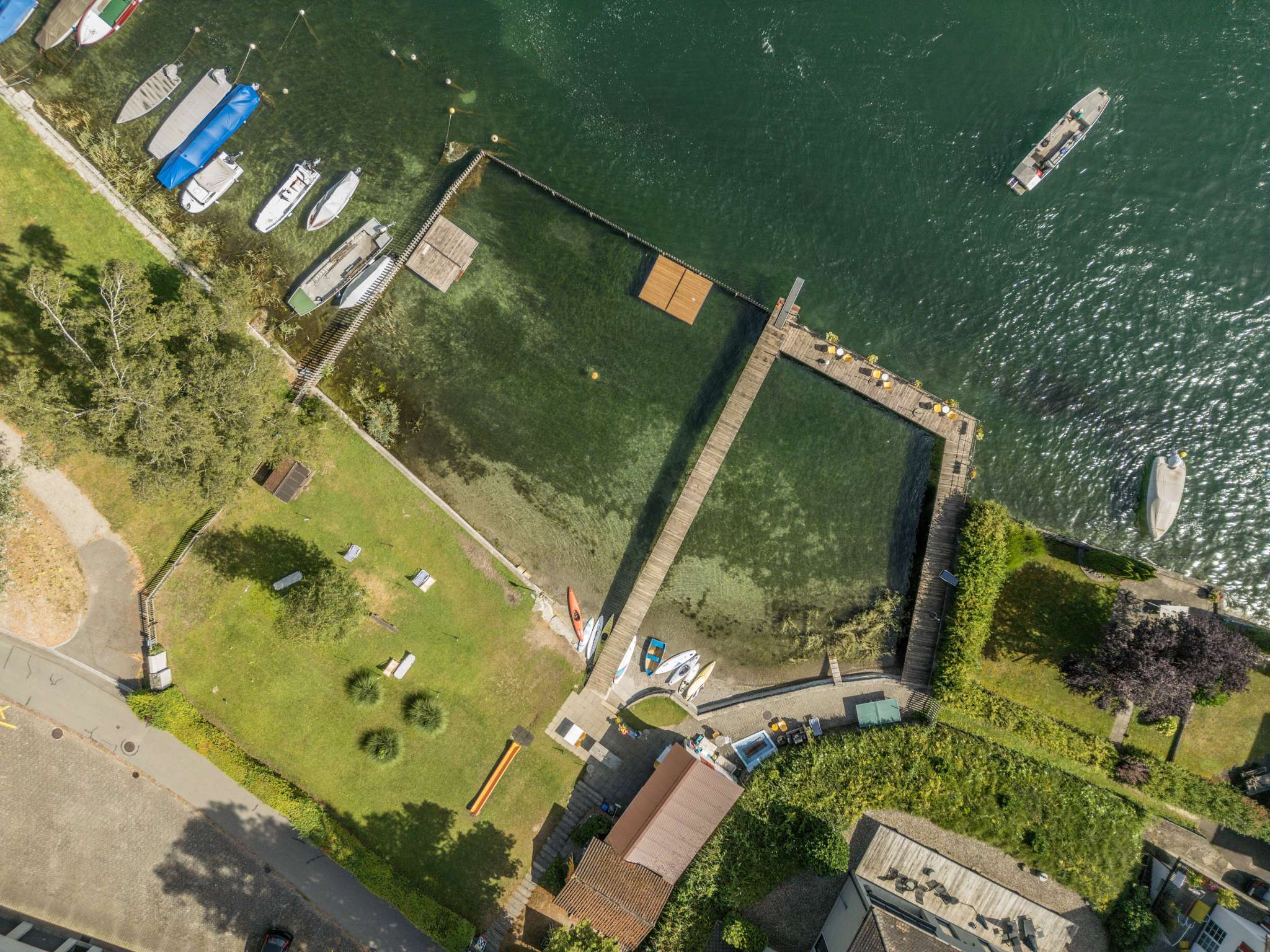Water supervision is guaranteed inside. Swimming in the open Rhine can be undertaken at your own risk.