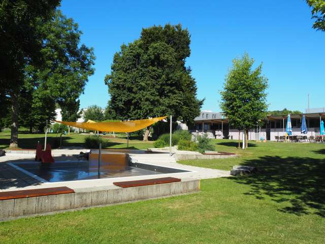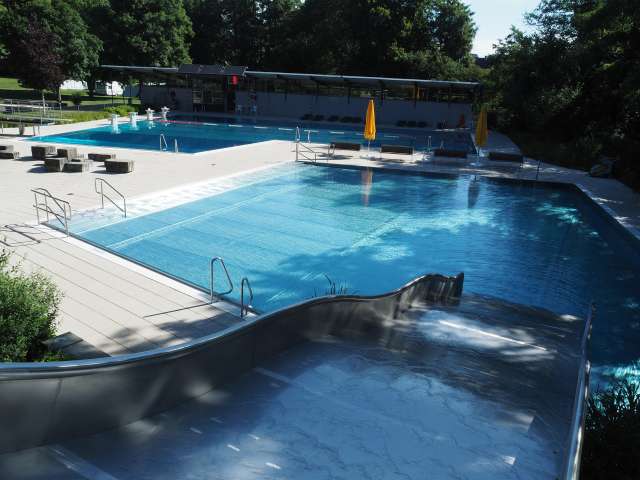 Amongst the different attractions the 14 m long, wide wave slide is the favourite, next to the springboard and the whirlpool. The youngest can have fun in the paddling pool with the water mushroom, the elephant slide and the hand pump with water channel. The open plan area at the children’s paddling pool invites the children to play in and around the
