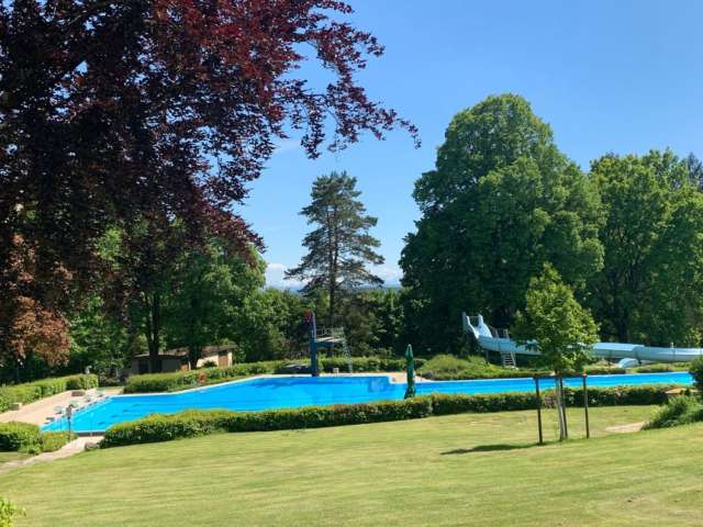 50-metre-swimming pool, non-swimmer’s pool and paddling pool, 35 m slide, 3 barbecue areas, beach and volleyball, table tennis tables.