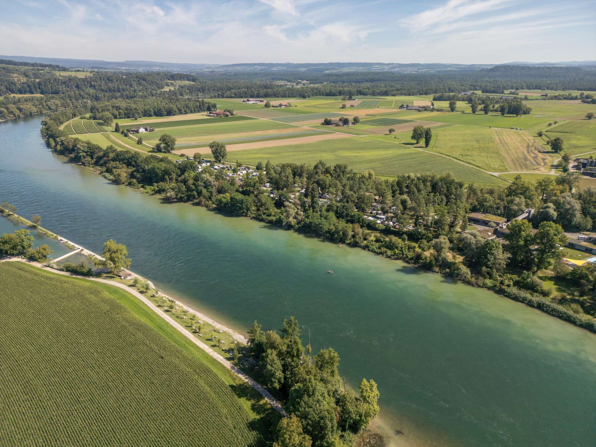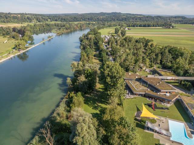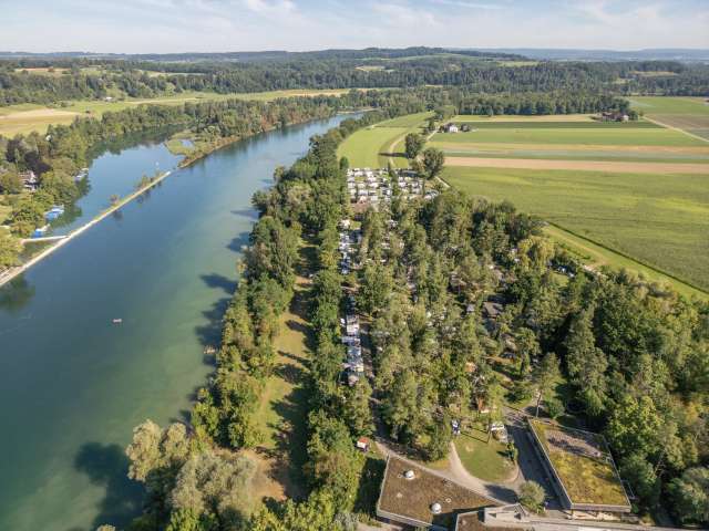A swim in the river in the morning and a bonfire on the riverbank in the evening – at TCS Camping Flaach, the Rhine is a constant presence. There are a 1,000 opportunities to enjoy your stay. The campsite is situated directly on the banks of the Rhine, surrounded by the Thurauen nature reserve. Pitches: partly in the woods and partly on fields or next to the water. Broad range of rental and glamping accommodation. Large swimming pool. Distances: Zurich Airport 20 km, Winterthur 15 km.
