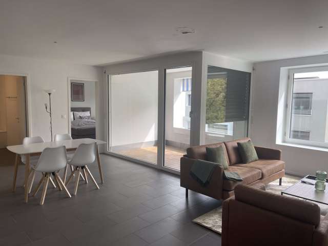Welcome to our exquisite flat! It is located in a new, very central building near the railway station and offers both comfort and tranquillity. This spacious accommodation is perfectly located in the heart of Schaffhausen. The tastefully furnished flat combines modern design with maximum comfort and is suitable for both tourist and business stays. Enjoy your stay in this unique ambience and discover the beauty of Schaffhausen right on your doorstep.