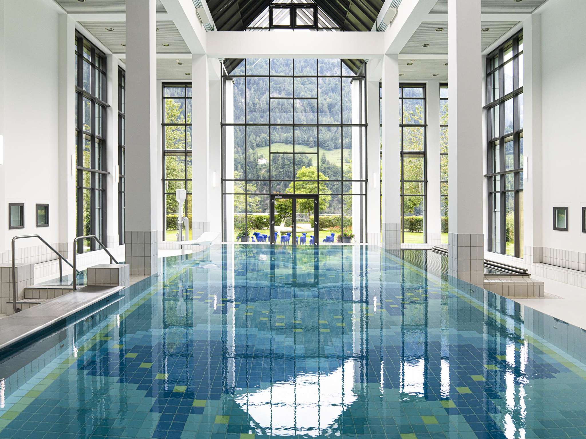 The Valens thermal bath uses natural thermal water from the Tamina Gorge, which reaches the pool at 36.5 °C through a pipeline. Relaxation is offered by bubble loungers, massage jets, and neck jets. Children are welcome.