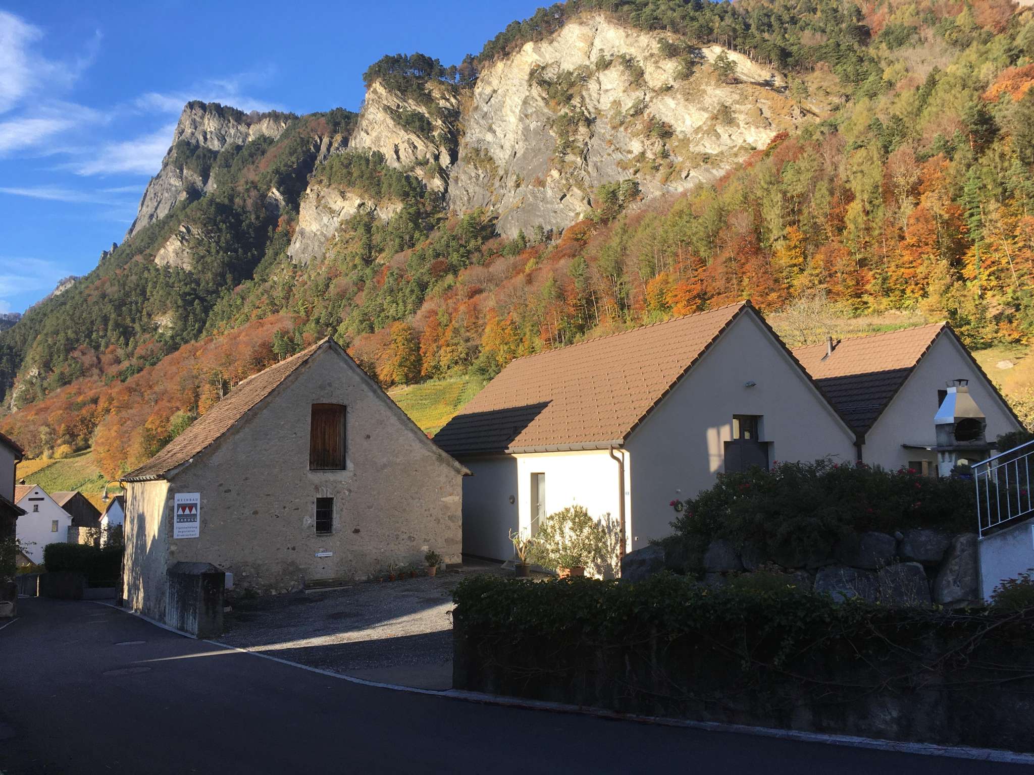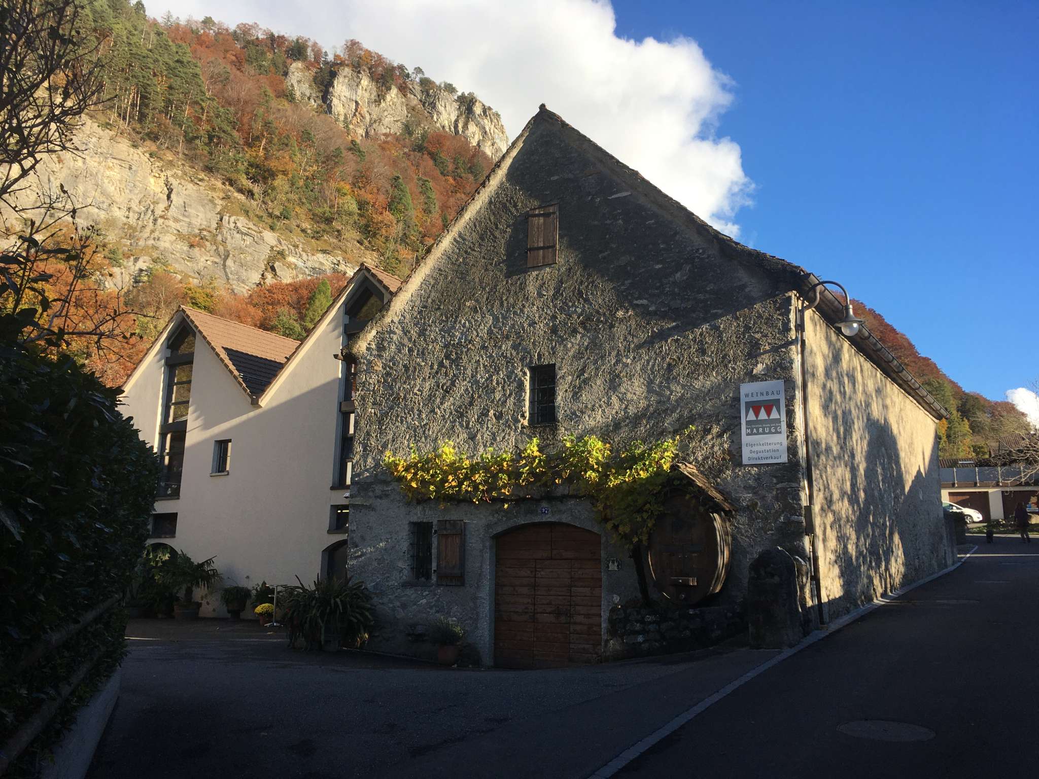 The three-story Torkel Marugg in Fläsch marks the upper end of the historic village center. The building from 1691 was partially rebuilt after a village fire in 1820 and still offers original interior furnishings.
