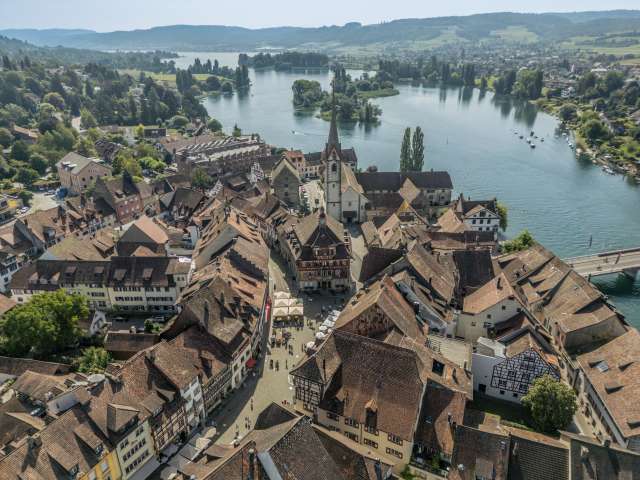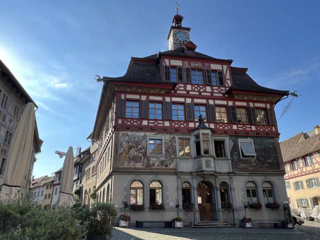 The magnificent town hall in Stein am Rhein captivates visitors with its colourful façade paintings and impressive half-timbered details. Located in the heart of the old town, it tells of the rich history and culture of this picturesque town on the Rhine.
