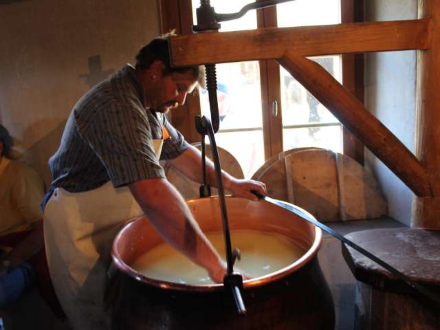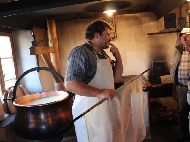 If you would like to take a closer look behind the scenes, a guided tour of the show dairy with cheese tasting is recommended or you can even take on the role of a dairymaid yourself. In the traditional cheese dairy you can make your own cheese, over an open fire like in the alp and traditional cheese dairy Tannenboden built around the turn of the century. Combine the guided tour with a subsequent lunch such as fondue or racclette.