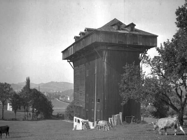 History: The history of the Tröckneturm tower is closely linked to the nearby Waldegg Castle (built in 1475). The stately estate, which included several ponds, was owned by the Abbey of St. Gallen for almost 300 years and fell to the canton after the Helvetic Revolution. In 1825, St. Gallen merchant Johann Jakob Täschler (1786-1830) purchased the castle and the surrounding area at auction and built a factory extension to Waldegg Castle. There he operated a red dye works. It was also Täschler who had the drying tower built in 1828. Architecture: The building is a well-thought-out construction: the overhanging roof allowed the cloth to be hung outside in good weather. In bad weather, the lengths of fabric could be hung up inside and dried by means of heating.