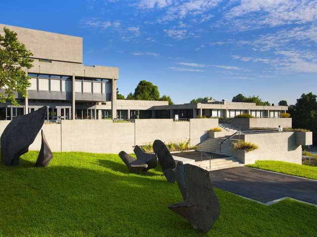 Knowledge also meets art at the University of St.Gallen: works by international artists such as Giacometti, Miró and Richter can be found here. The works of art are not only integrated into everyday student life, but also into the architecture: While in the main building they play a counterpart to the building style, in the library building they complement the architectural variety of forms in a narrative way. Explore the art around the university with the Art@HSG app available in the App Store and Google Play.