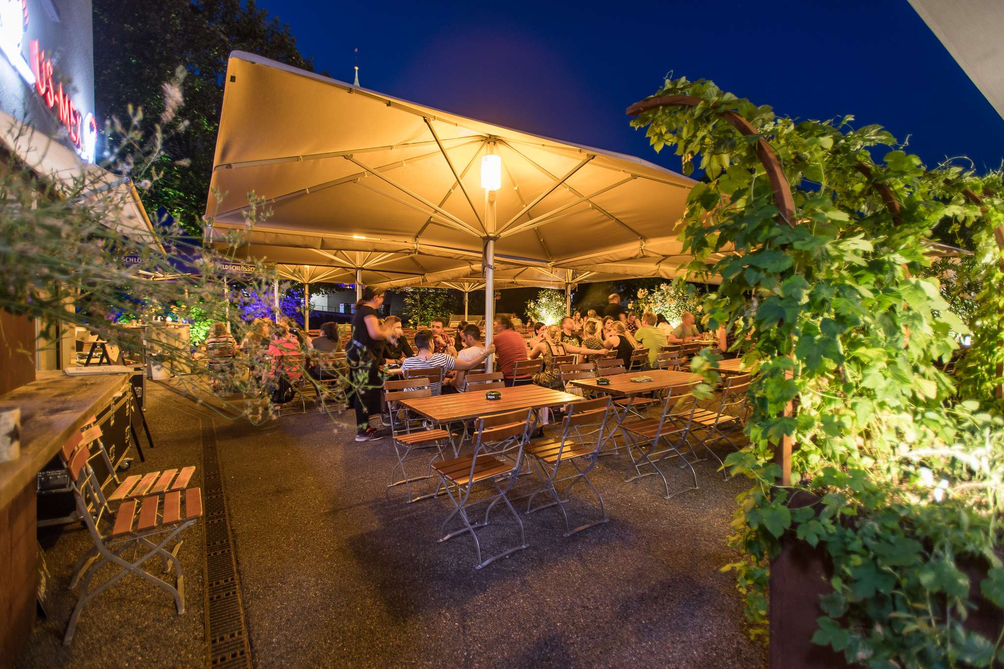 From April to September, the US-MEX Terraza, the beach bar on the Murg, is the most relaxing place to end the sunny days. Guests can look forward to cosy lounges, a suitable range of drinks and irresistible US-MEX snacks.
