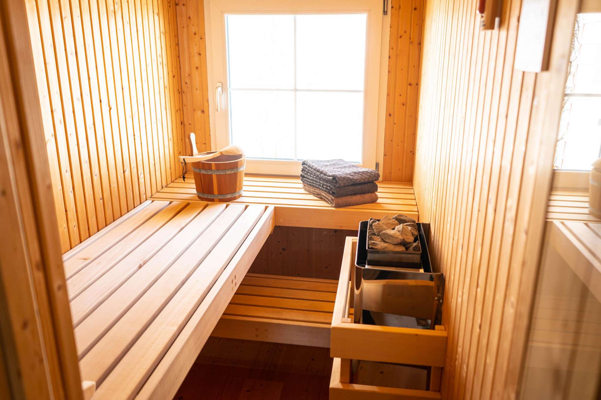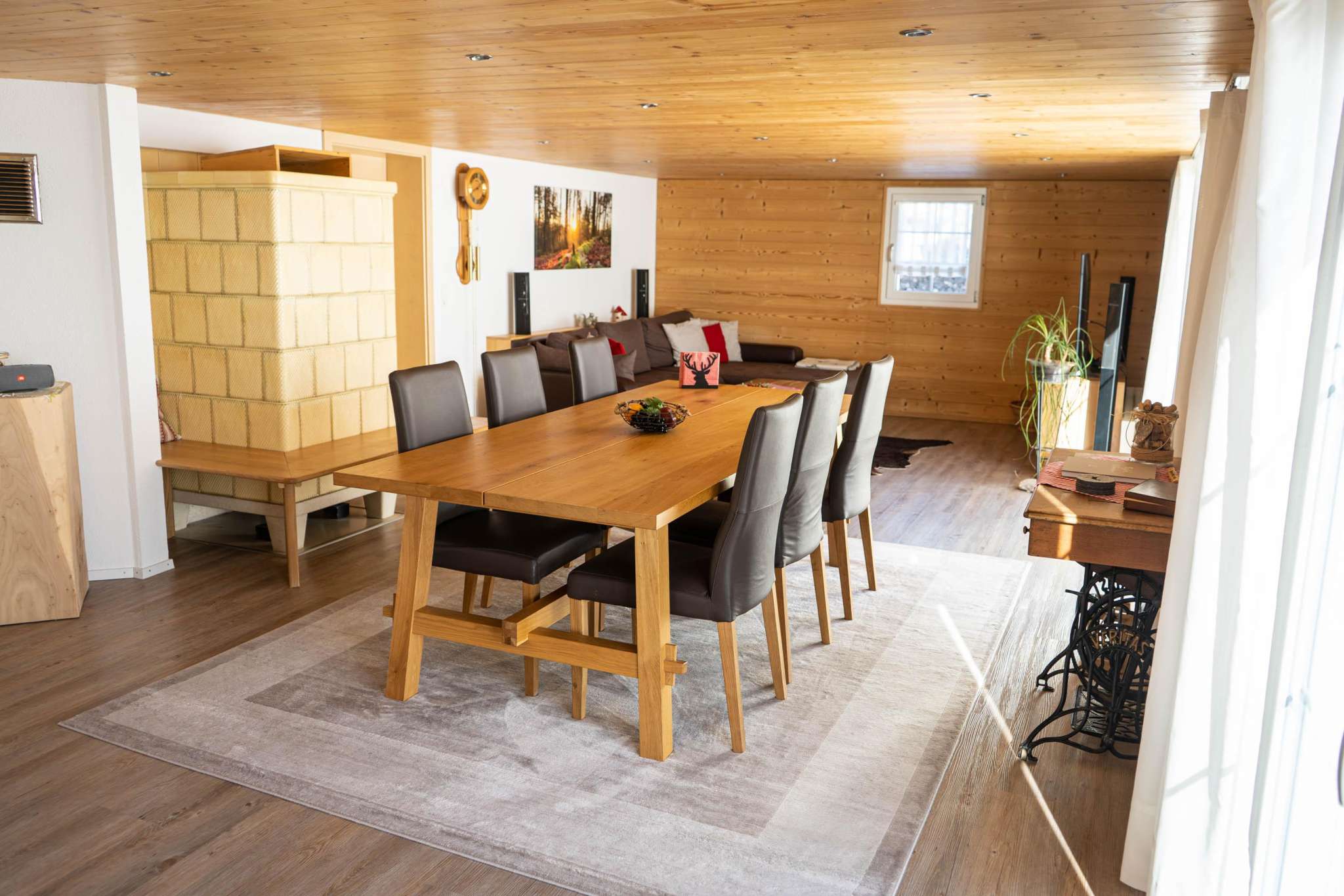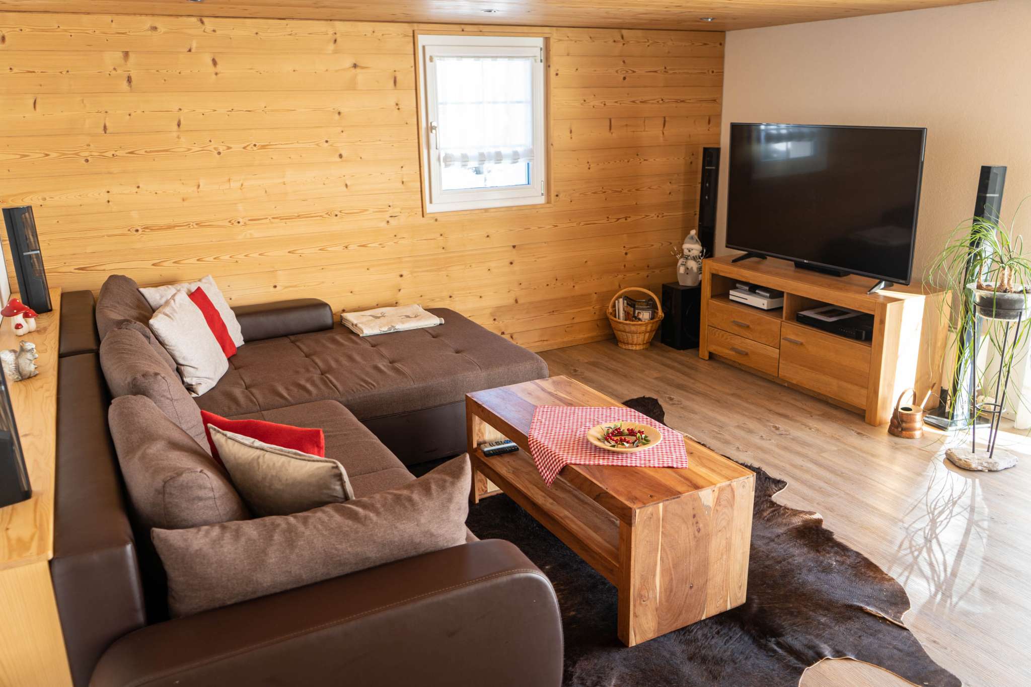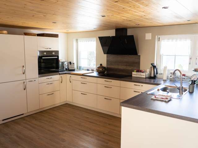 After a winter walk to Hochhamm or skiing with the children on the Hörnli ski lift (which is within walking distance), you can warm up in the sauna. Afterwards, a modern kitchen allows you to enjoy a cozy fondue evening in the warm parlor, but the equipment is also available for more sophisticated menus.