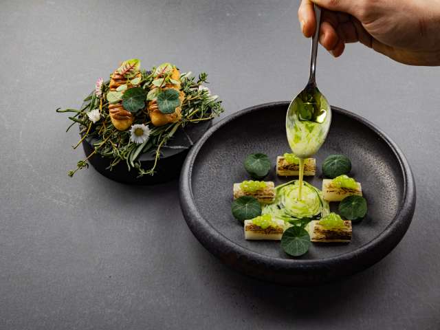 The cuisine is characterised by both regional and international influences, always with a vegetarian or vegan option. Original flavour combinations always surprise the palate anew and make dining together a real experience. Fresh and top-quality products are as much a matter of course as the passion to offer guests a culinary highlight.